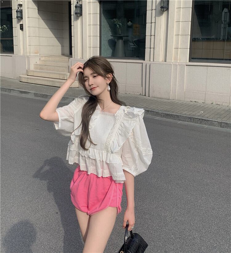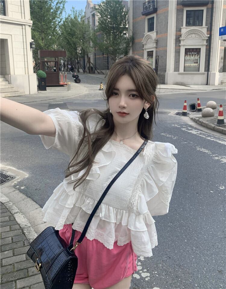 スリーブシャツ レディースサマーレーススタンダード レトロ 夏物 セブンプリンセス75621707955