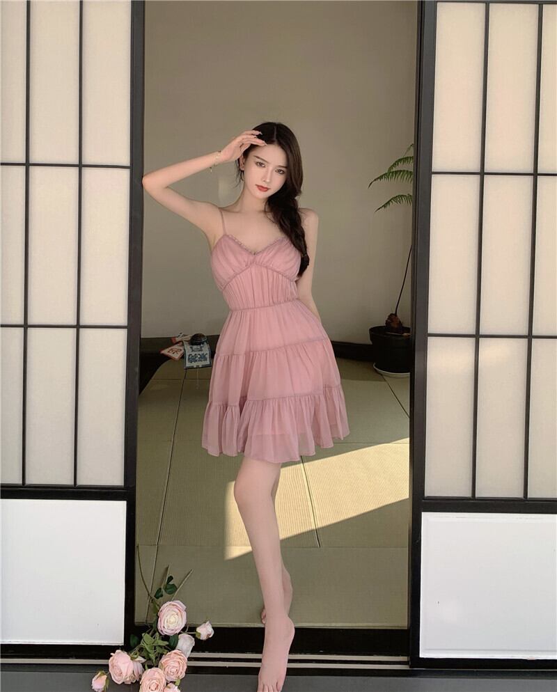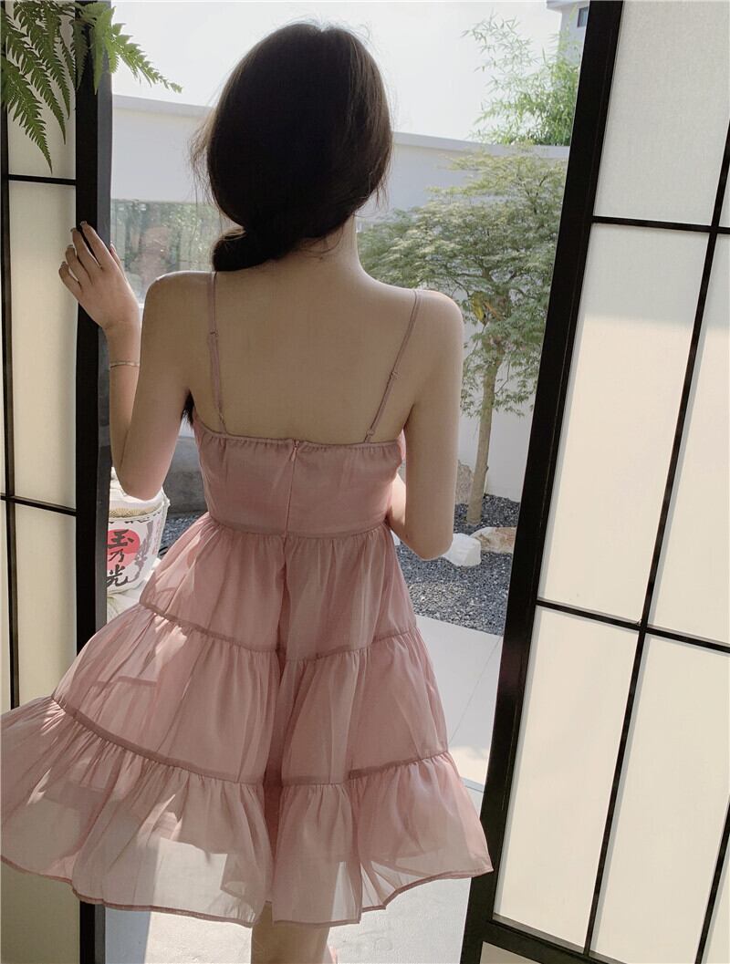 ドレス サマーVネックメッシュスカート ウェスト薄手Aライン 大人ガーリー スウィート キュート カジュアル 夏物 セブンプリンセス94949532894