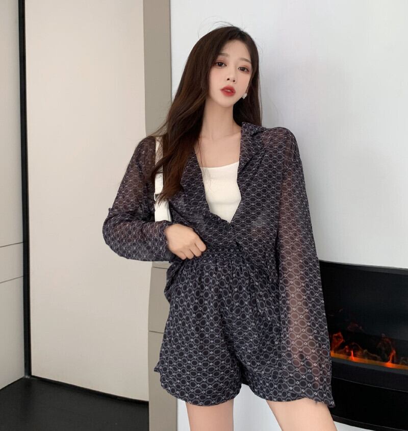 シフォンレディースサマー薄手シャツ ハイウェストウェストショーツ カジュアル ロング 夏物 ブルマー セブンプリンセス77092377584