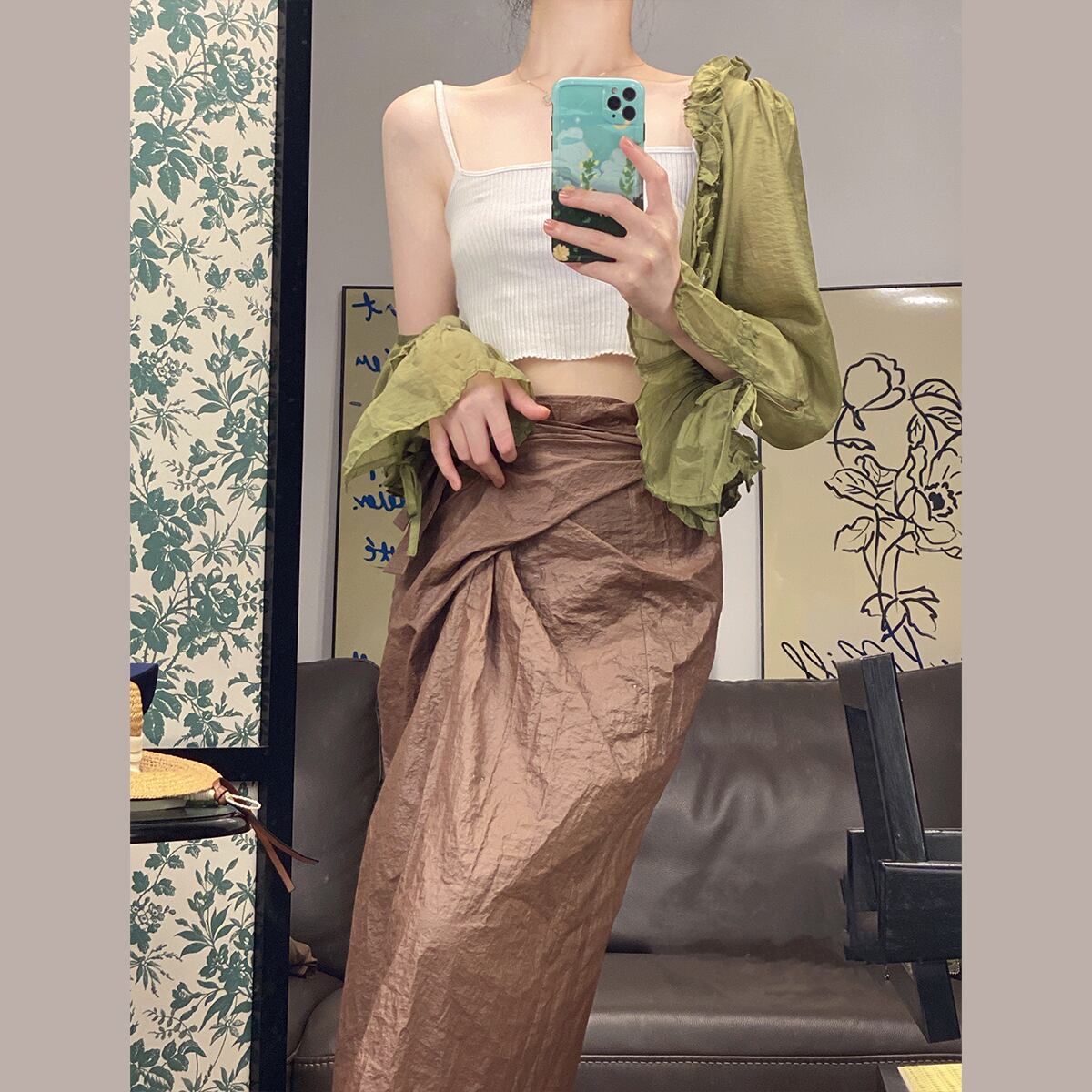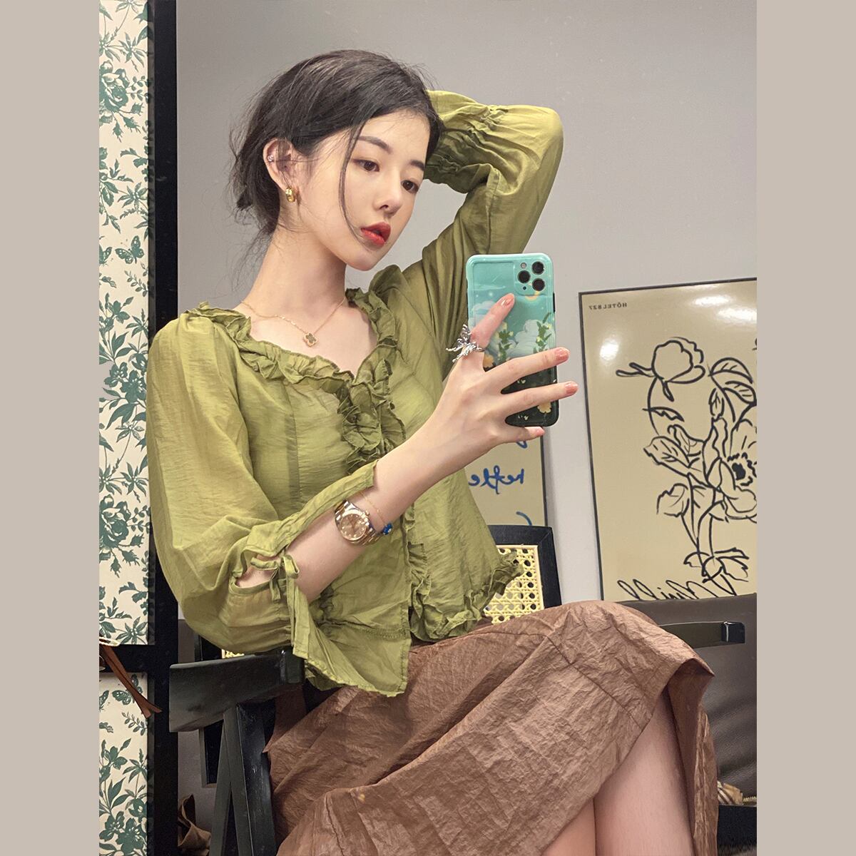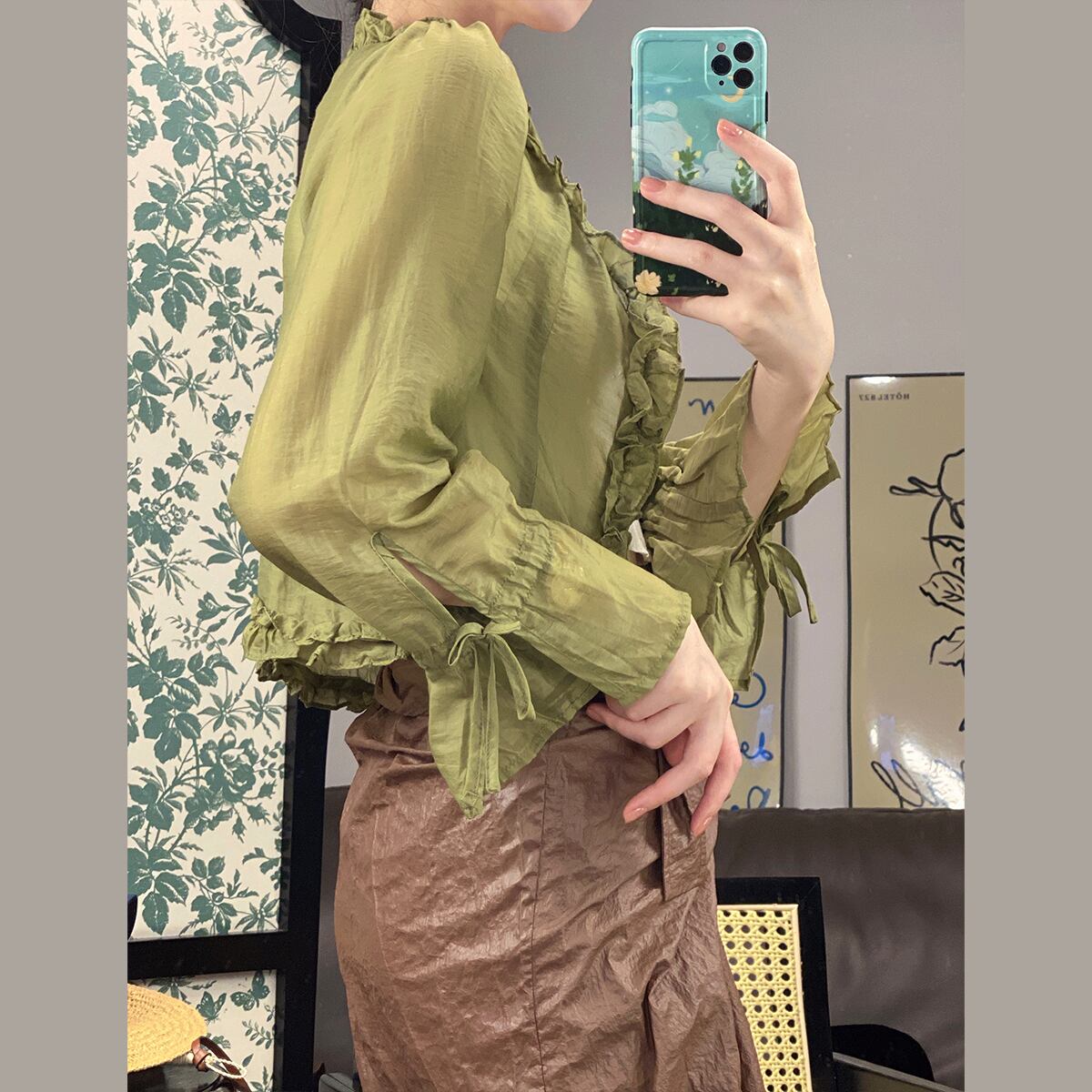 シャツ レディースサマー薄手ショートグリーントップス ロング 夏物 セブンプリンセス85393532931