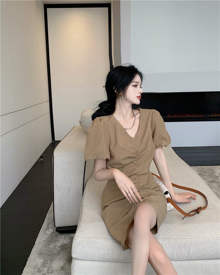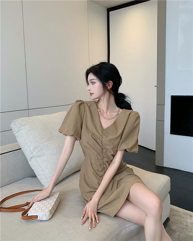 スリーブTシャツ ドレス サマーVネックスカート スタンダード レトロ 夏物 セブンプリンセス43123242978