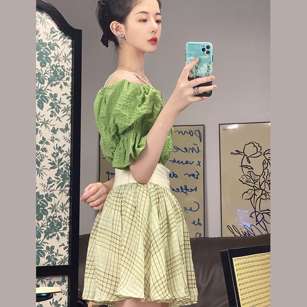 スリーブシャツ サマー薄手ショートグリーントップス 夏物 セブンプリンセス70180774474