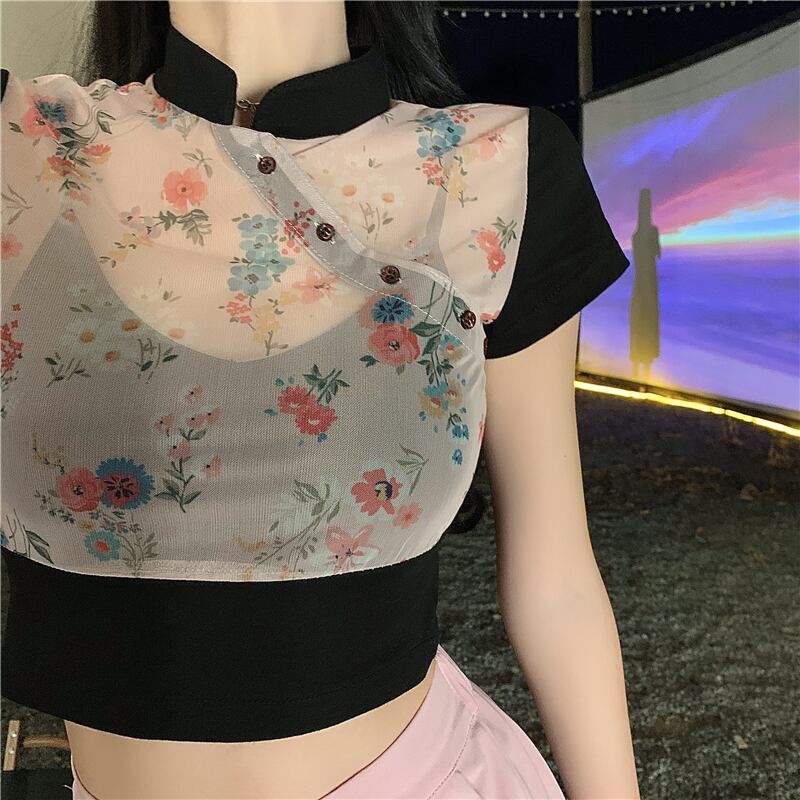 フローラルTシャツ レディースサマースタンダード薄手半袖スリーブカジュアルトップス ショート レトロ ハーフスリーブ 夏物 花柄 セブンプリンセス6714692665
