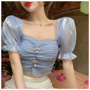 スリーブシャツ ショートサマーリボンレース 大人ガーリー スウィート キュート カジュアル 夏物 セブンプリンセス89561435941