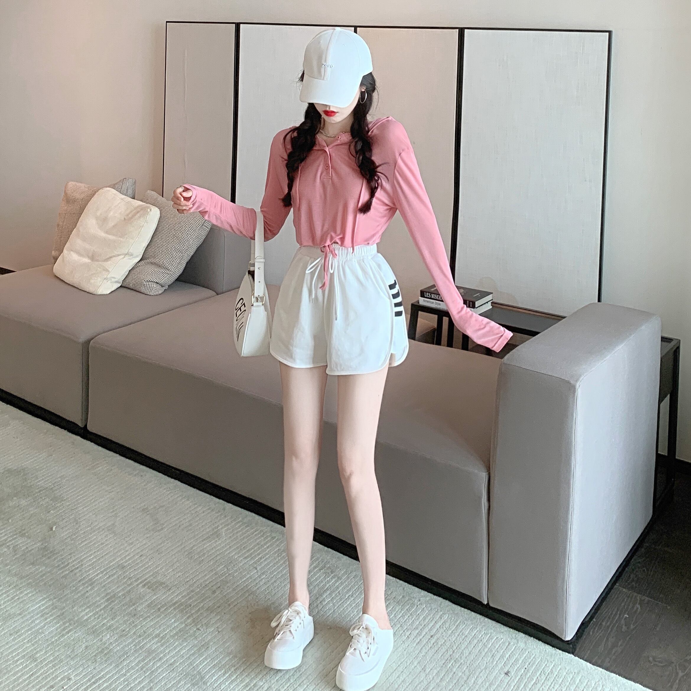 フードTシャツ サマー薄手ギャザーショートスリムレッドブラウス トップス ロング ピンク 夏物 セブンプリンセス77062888695