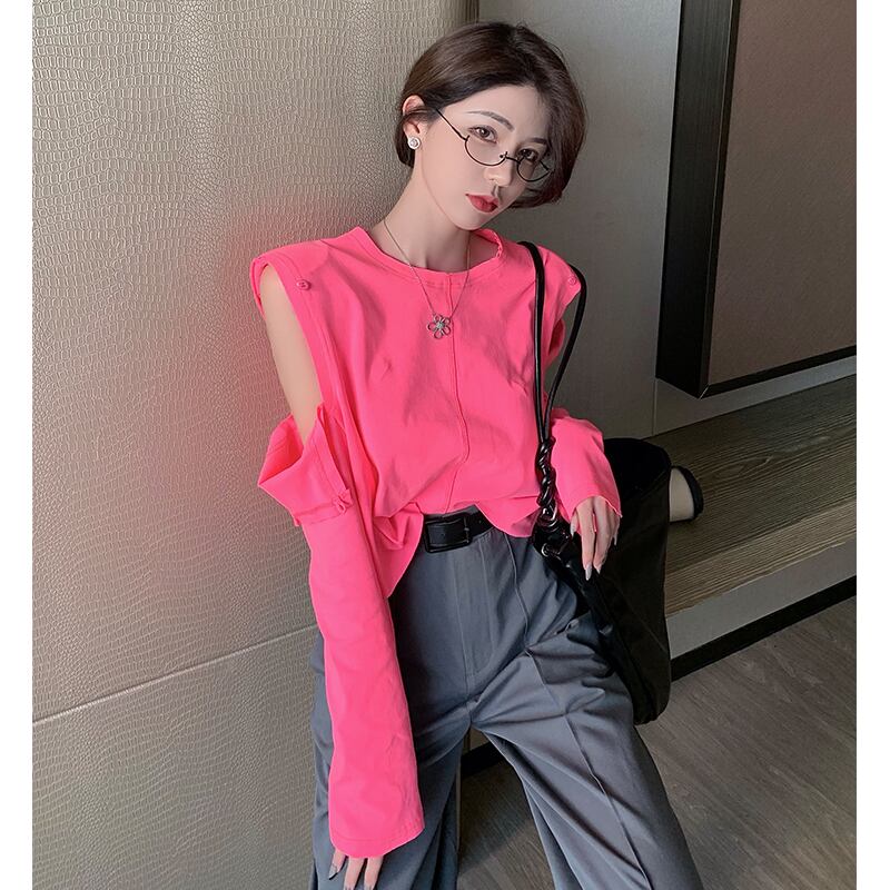 Tシャツ サマー薄手トップス ロング 夏物 オフショルダー セブンプリンセス90232407914