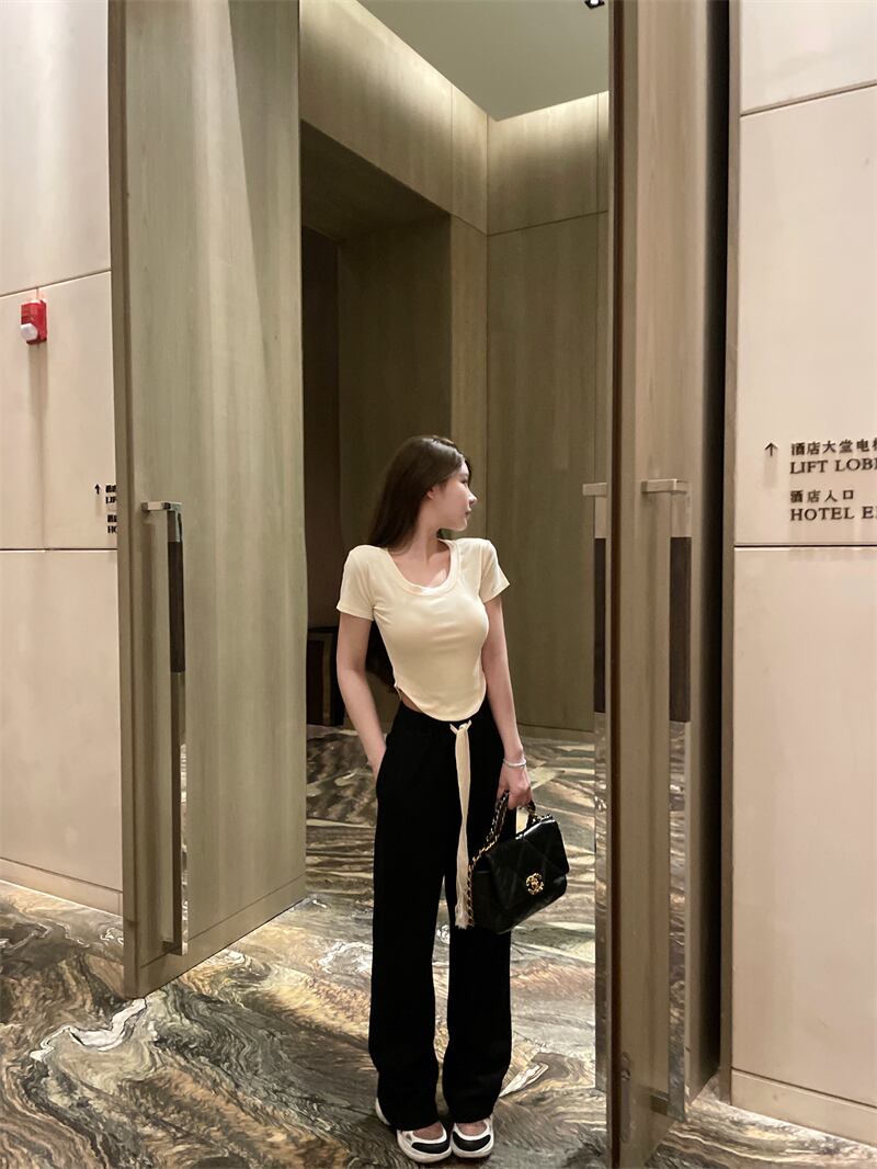 ブラックハイウェストカジュアルパンツ サマー薄手ルーズレッド 夏物 セブンプリンセス11005479164