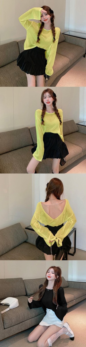 ブラウス レディースサマーバック薄手ニットセーター ルーズカジュアルショートトップス ロング 夏物 シルク セブンプリンセス47242541868