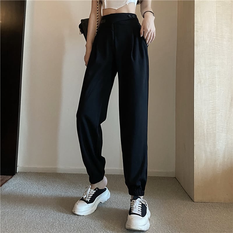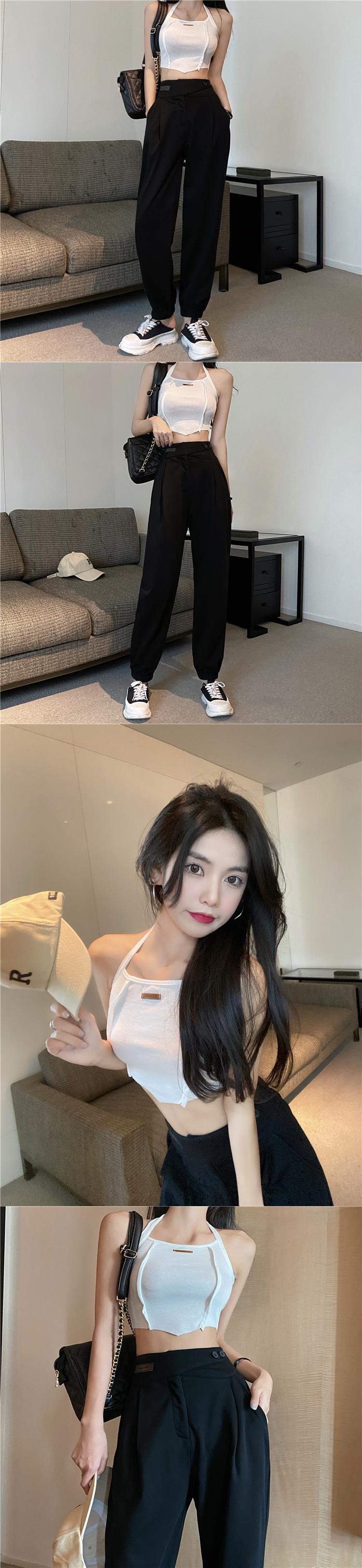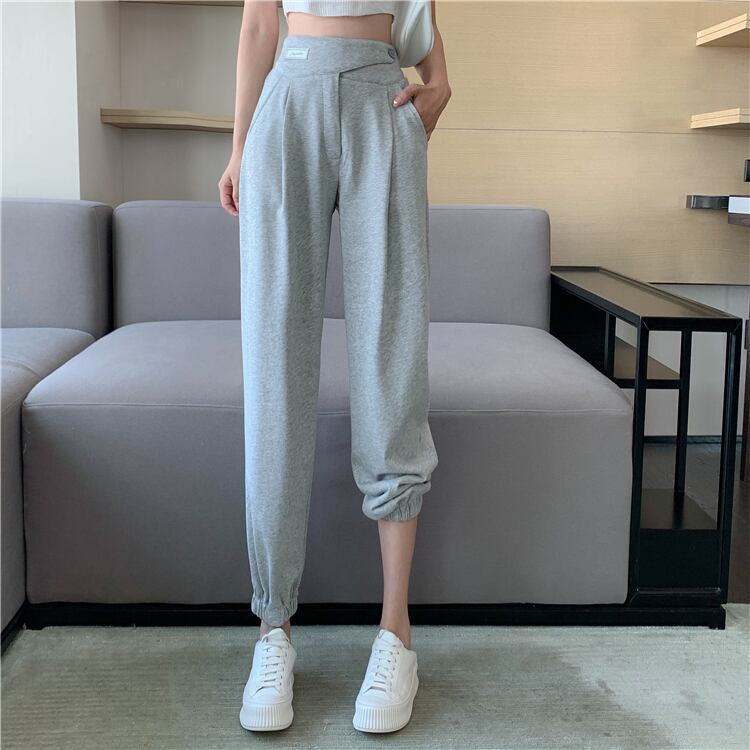 グレーパンツ サマー薄手ハイウェストウェストルーズレギンス カジュアル 夏物 セブンプリンセス67958579552