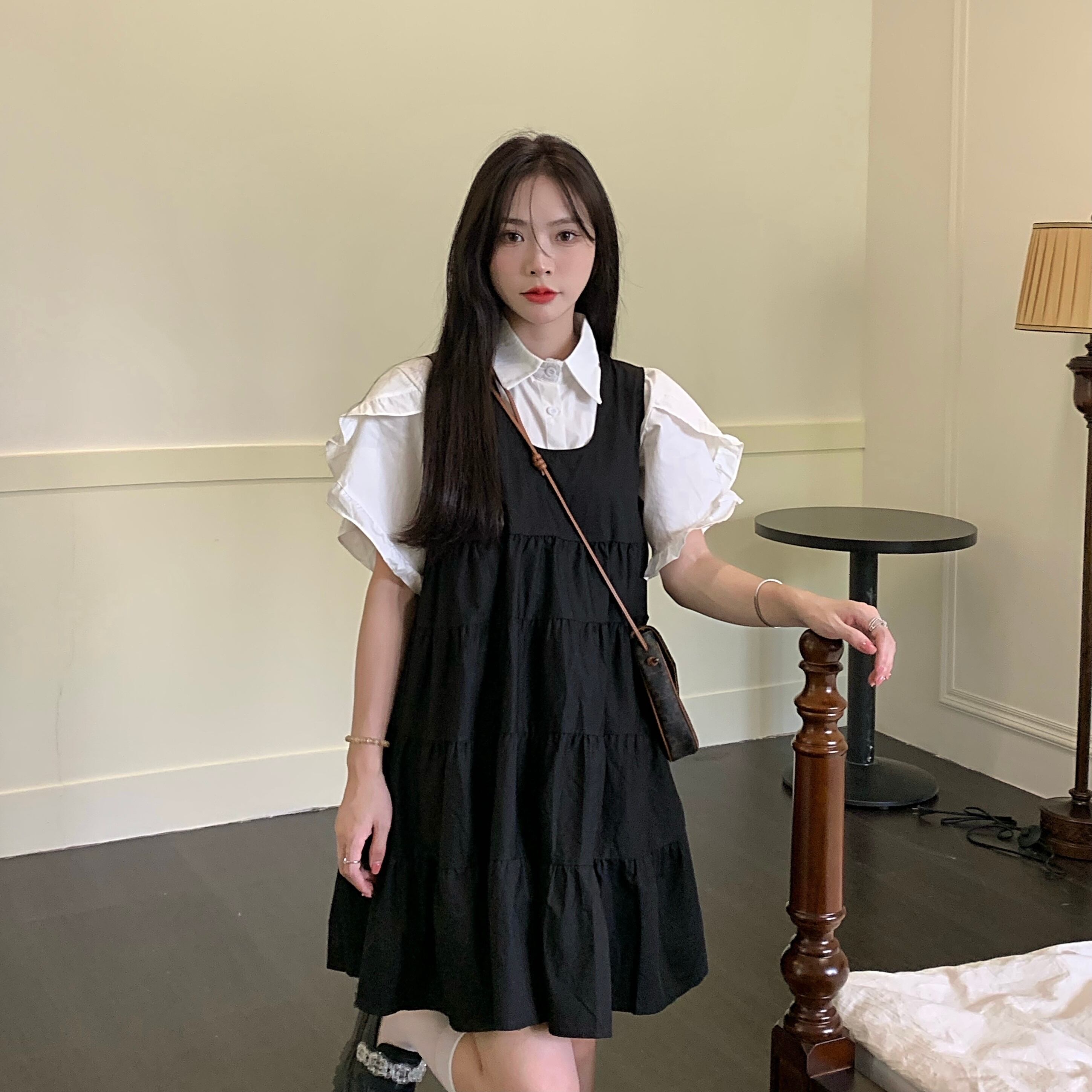 色:コート,黒いドレス