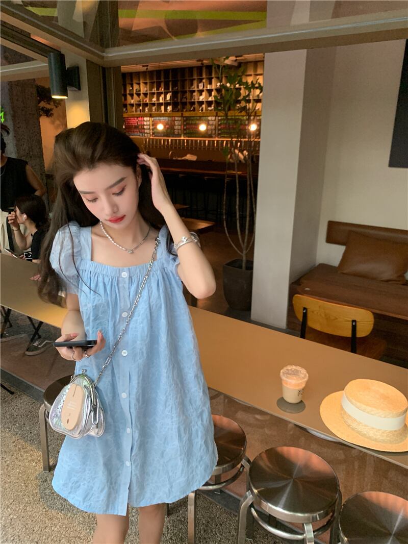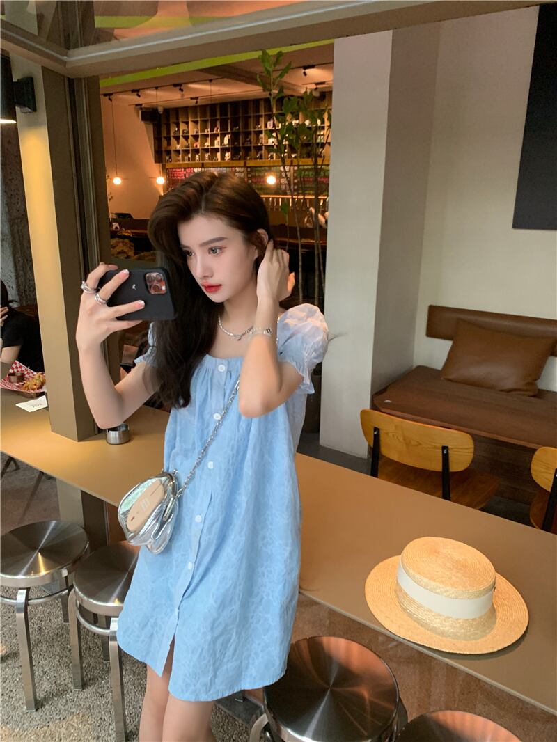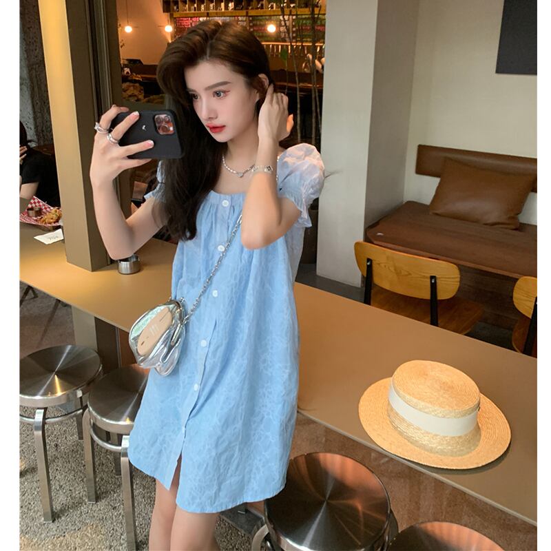 スリーブフローラルドレス サマールーズカラーショートスカート カジュアルスリム 夏物 花柄 スクウェア セブンプリンセス68142690460