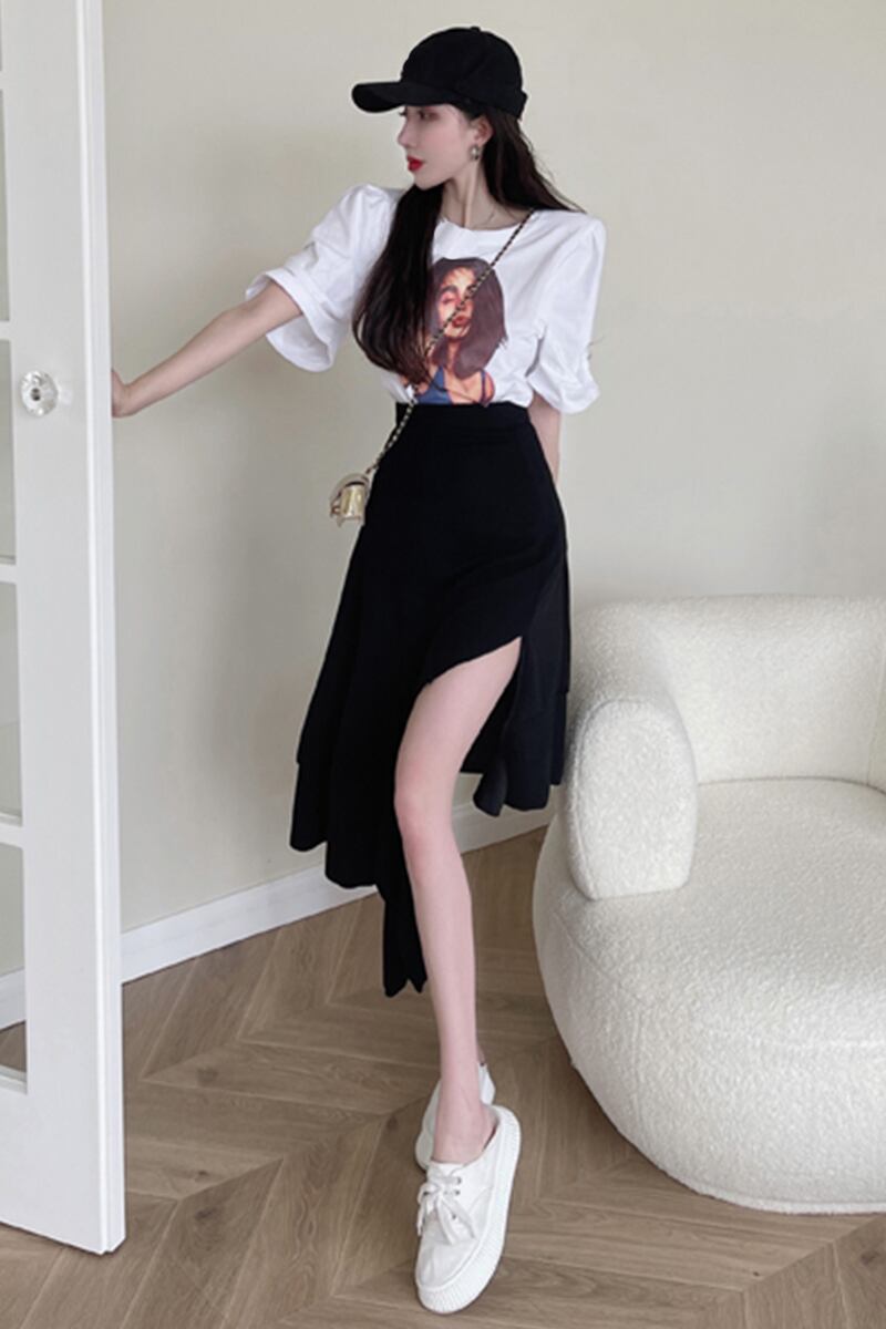 スカート サマーハイウェストウェスト薄手Aライン 夏物 セブンプリンセス31532024695