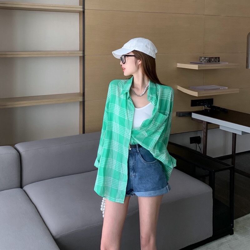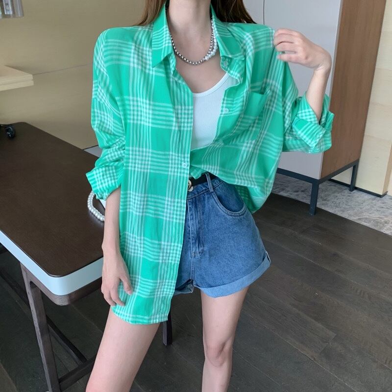格子柄シャツ サマー薄手スタイルルーズカジュアルトップス ロング 夏物 セブンプリンセス50471976003