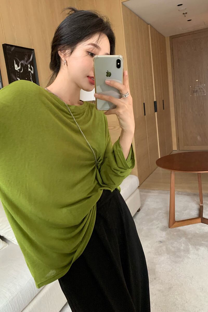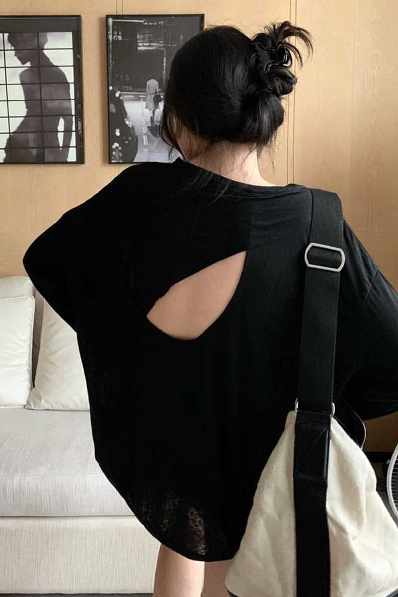 ブラウス サマー薄手バックラウンドネックTシャツ ルーズカジュアルトップス ロング 夏物 Oネック セブンプリンセス21664690969