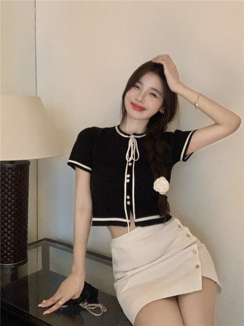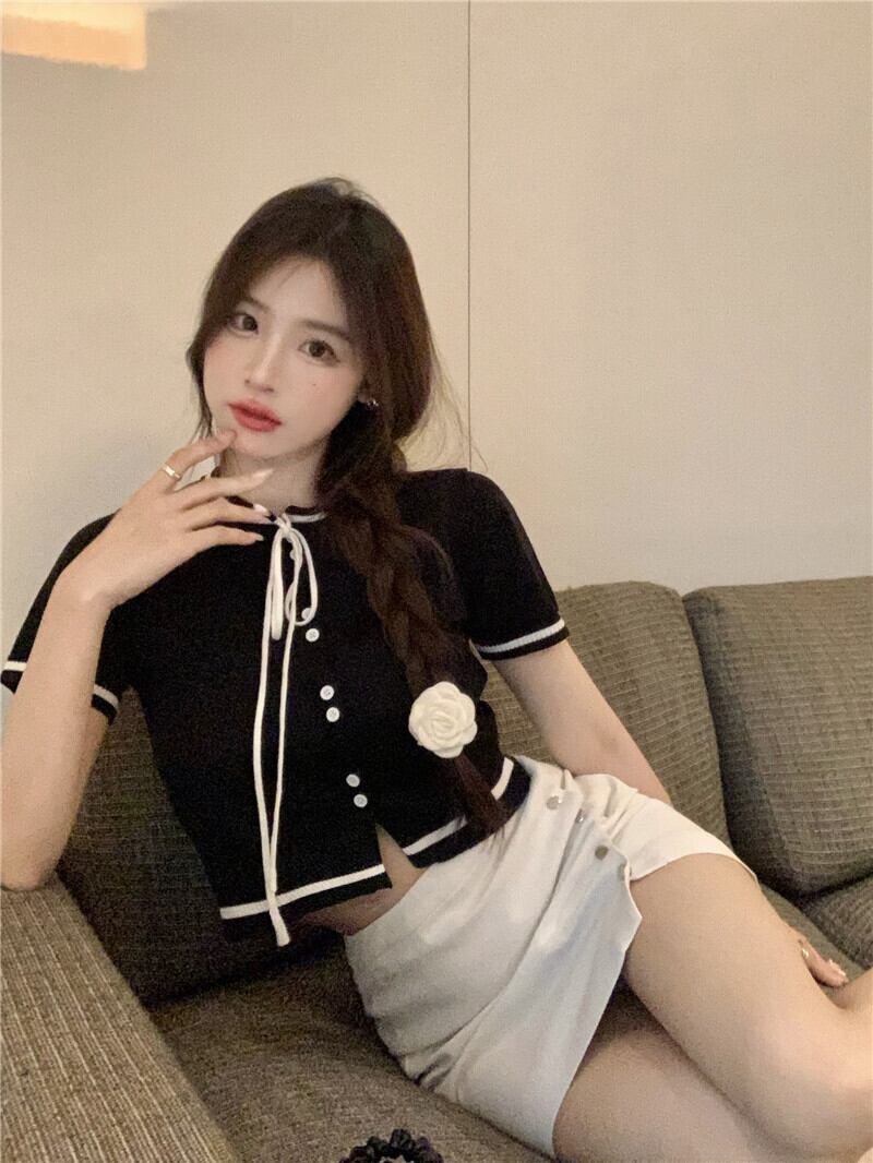 カラーセーター サマー薄手レースラウンドネックショートトップス 夏物 Oネック シルク セブンプリンセス53520168482