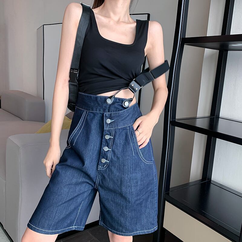 ショーツ レディースサマーハイウェストウェストルーズパンツ 薄手ジーンズ 夏物 ブルマー セブンプリンセス88118140598