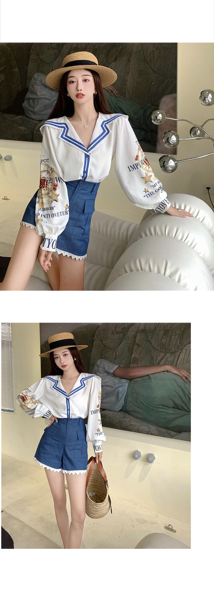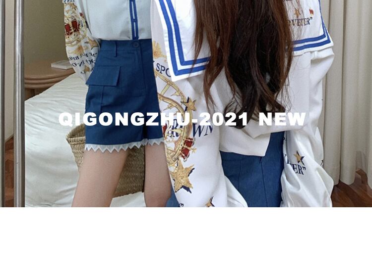 カラーネイビーシャツ レディースサマーシフォン薄手ホワイトトップス ロング 夏物 セブンプリンセス2843317699