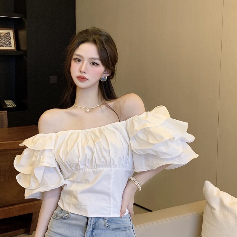 カラースリーブトップス レディースサマープリーツ半袖ハイウェストウェストシャツ ショート ハーフスリーブ 夏物 スクウェア セブンプリンセス85912998707