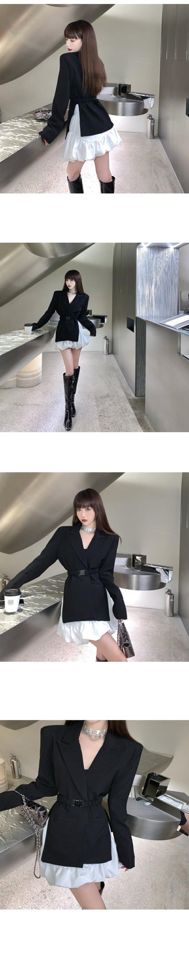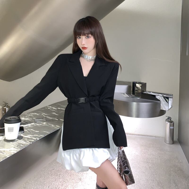 色:黒のスーツ(ベルト付き),白いスカート