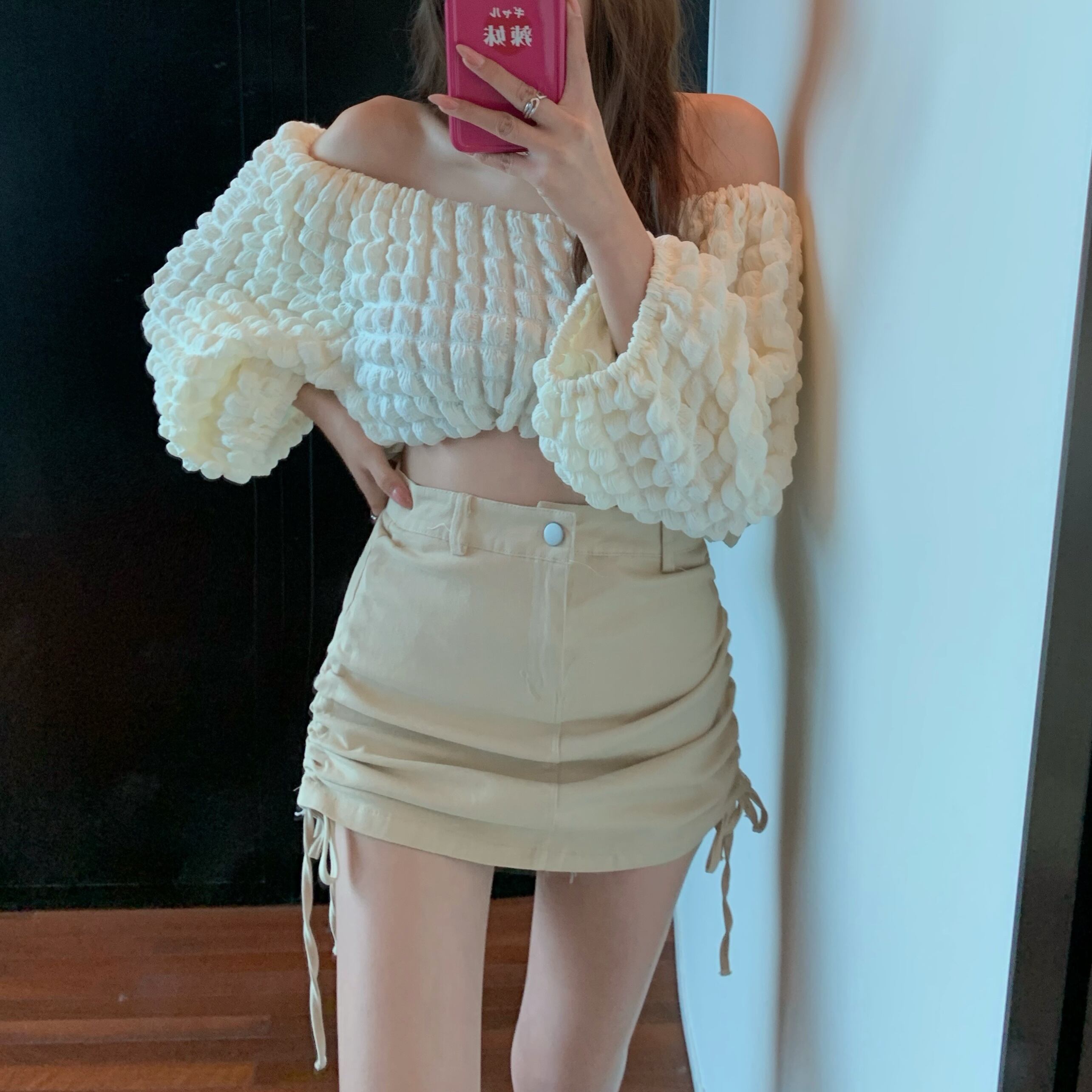 スカート サマーギャザーハイウェストウェスト薄手ショートプリーツAライン 夏物 セブンプリンセス26001347253