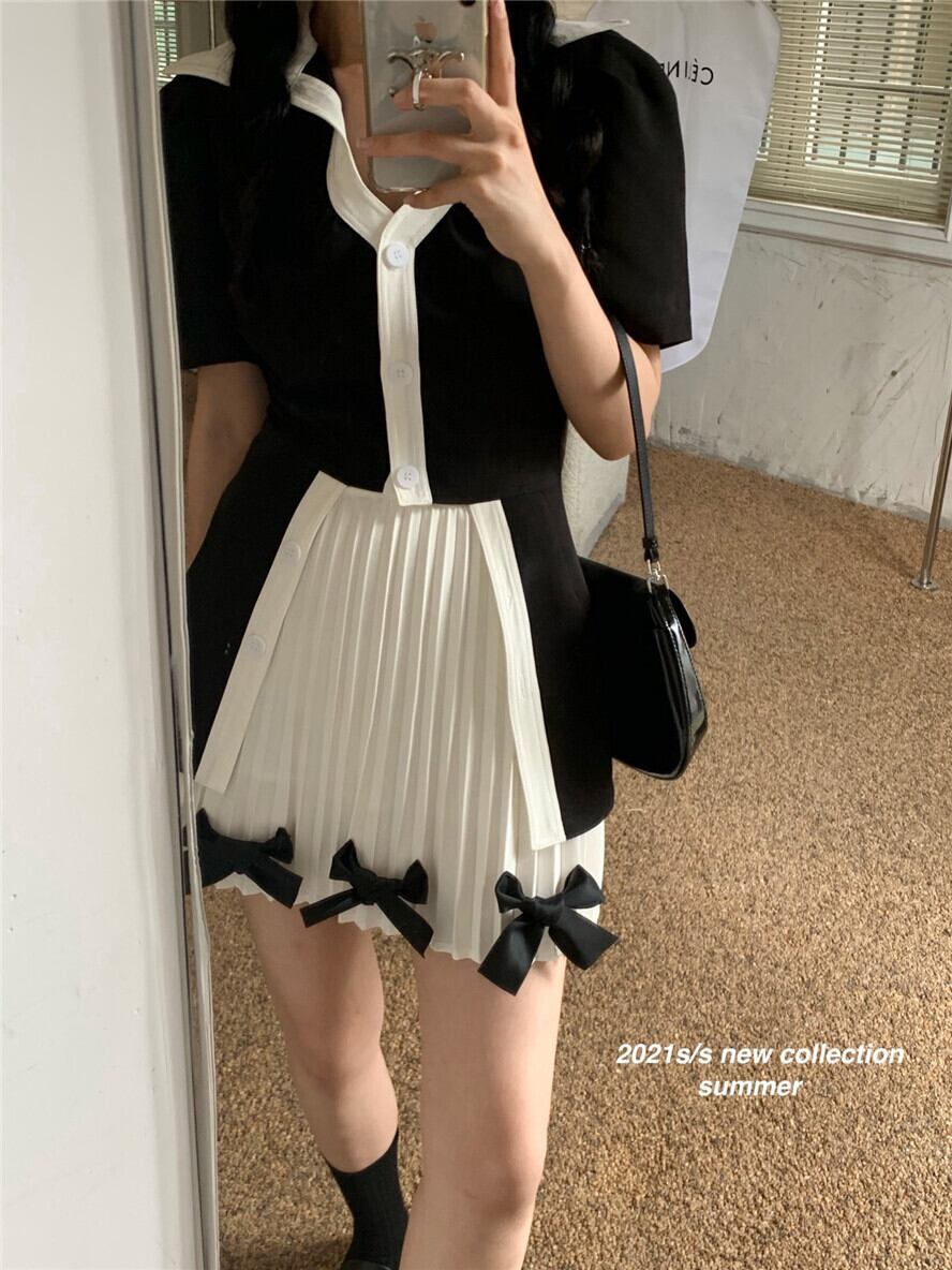 スカート サマートップス リボンプリーツ 夏物 セブンプリンセス65809617457