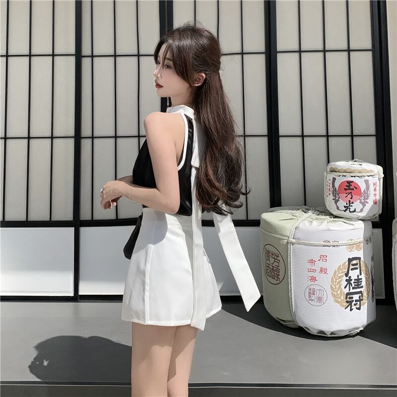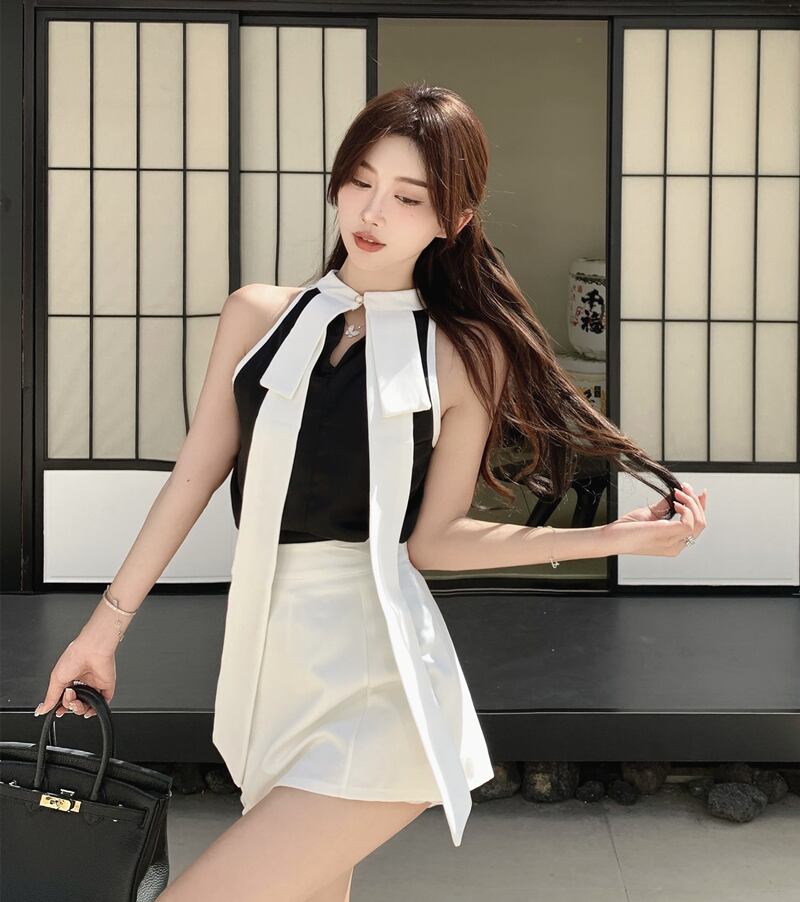 ブラックノースリーブホルターカラーサマー ブラウス 夏物 セブンプリンセス32913595919