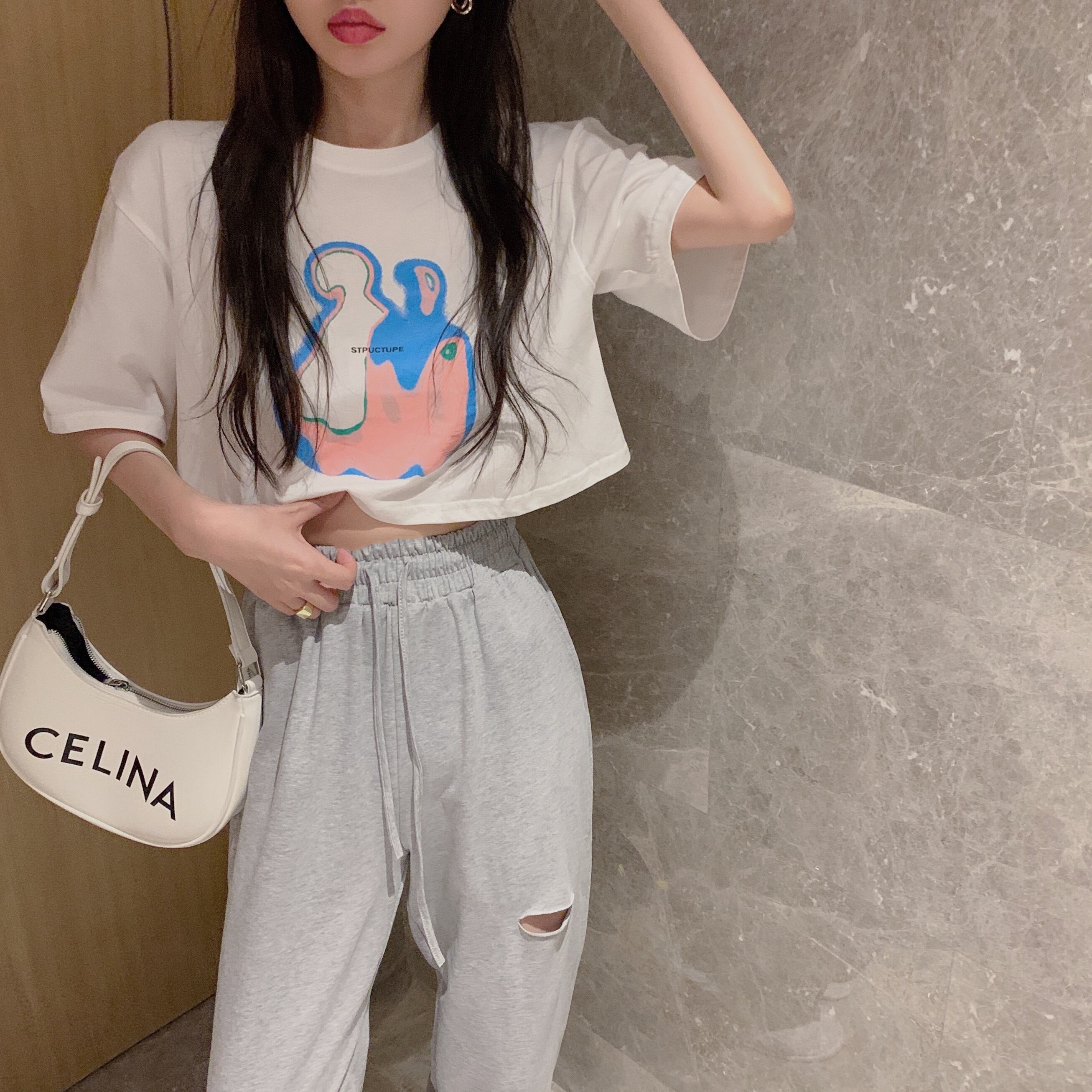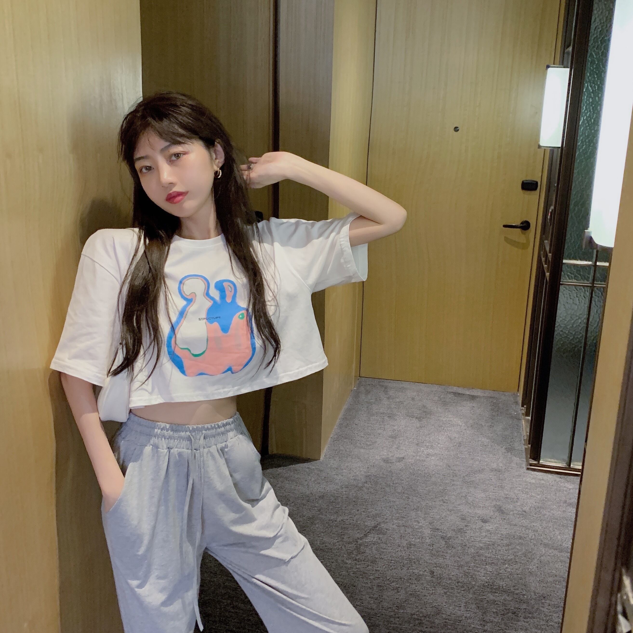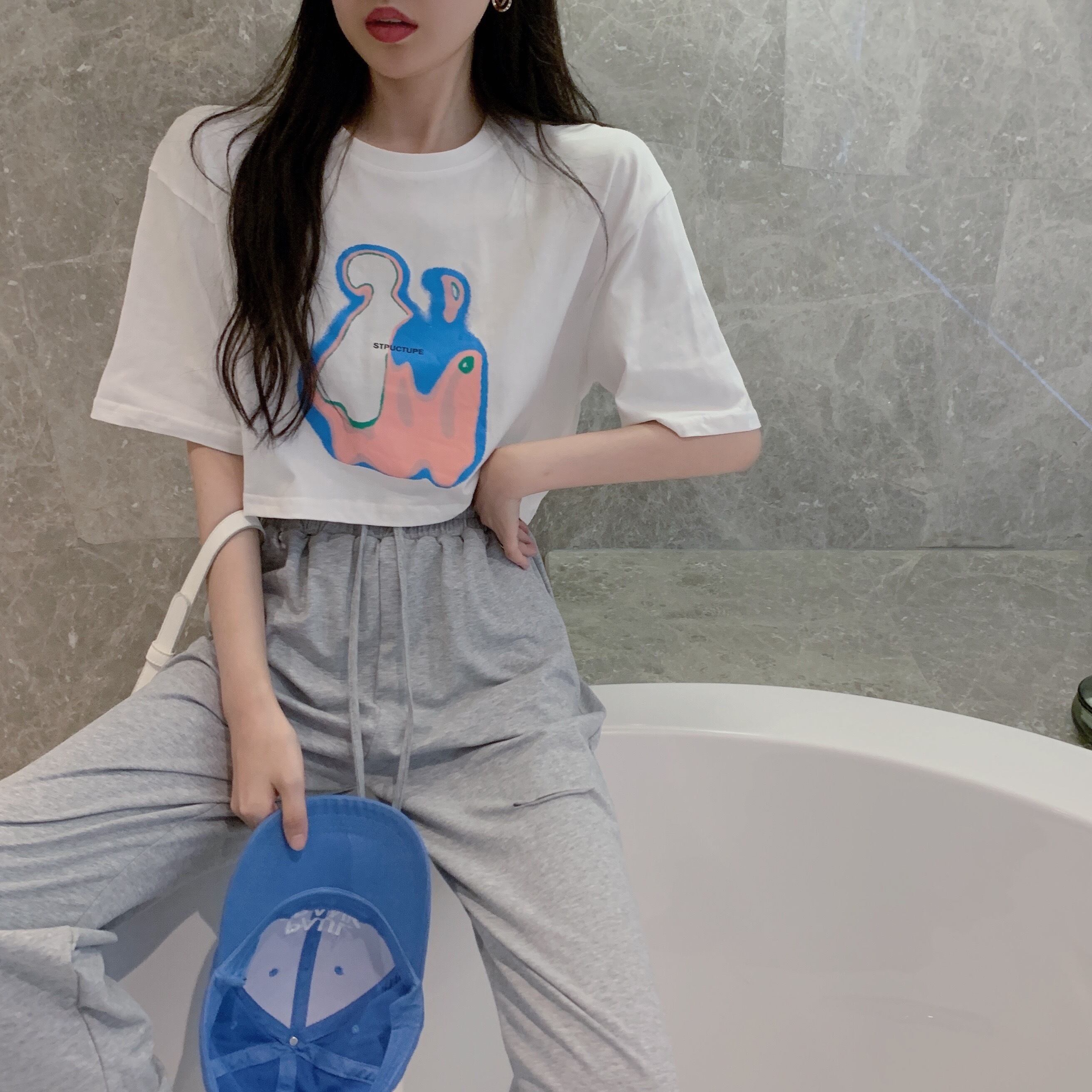 プリントTシャツ レディースサマー薄手ルーズショートクロップドトップス 夏物 セブンプリンセス64166419931