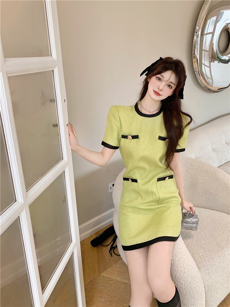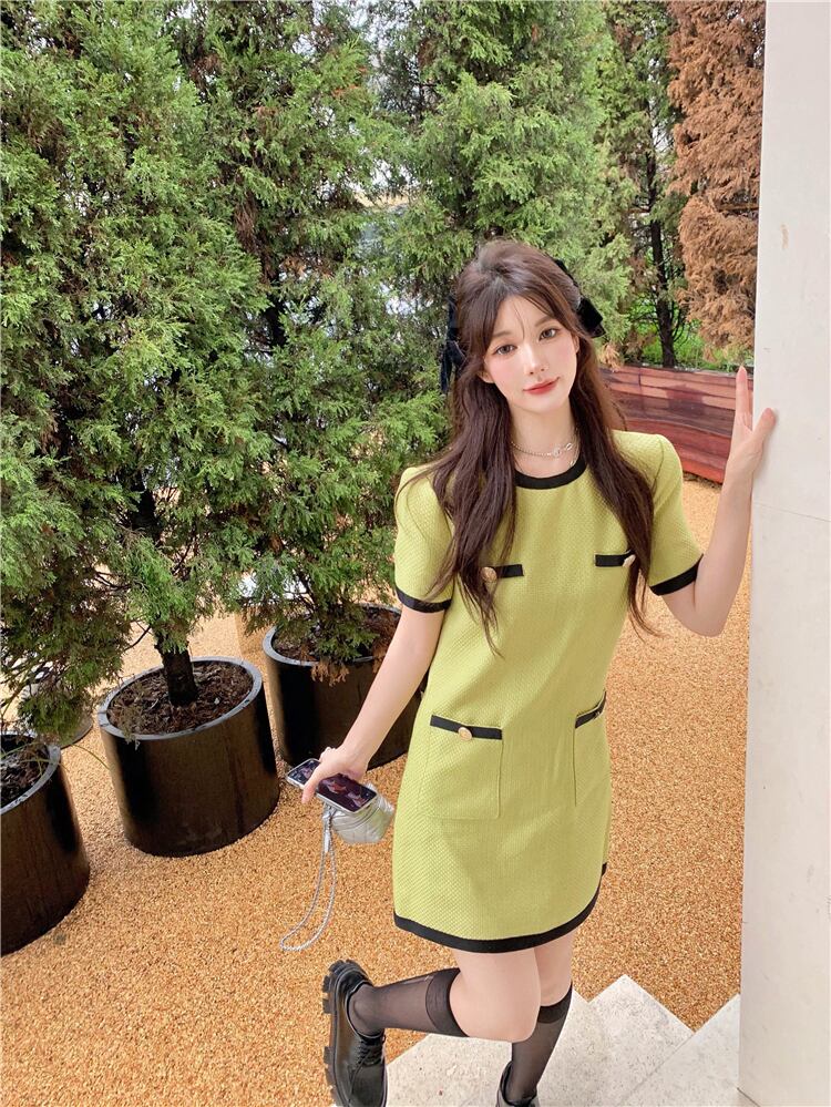 ショートドレス サマー薄手スリムスカート ウェストグリーン 夏物 セブンプリンセス66374896101