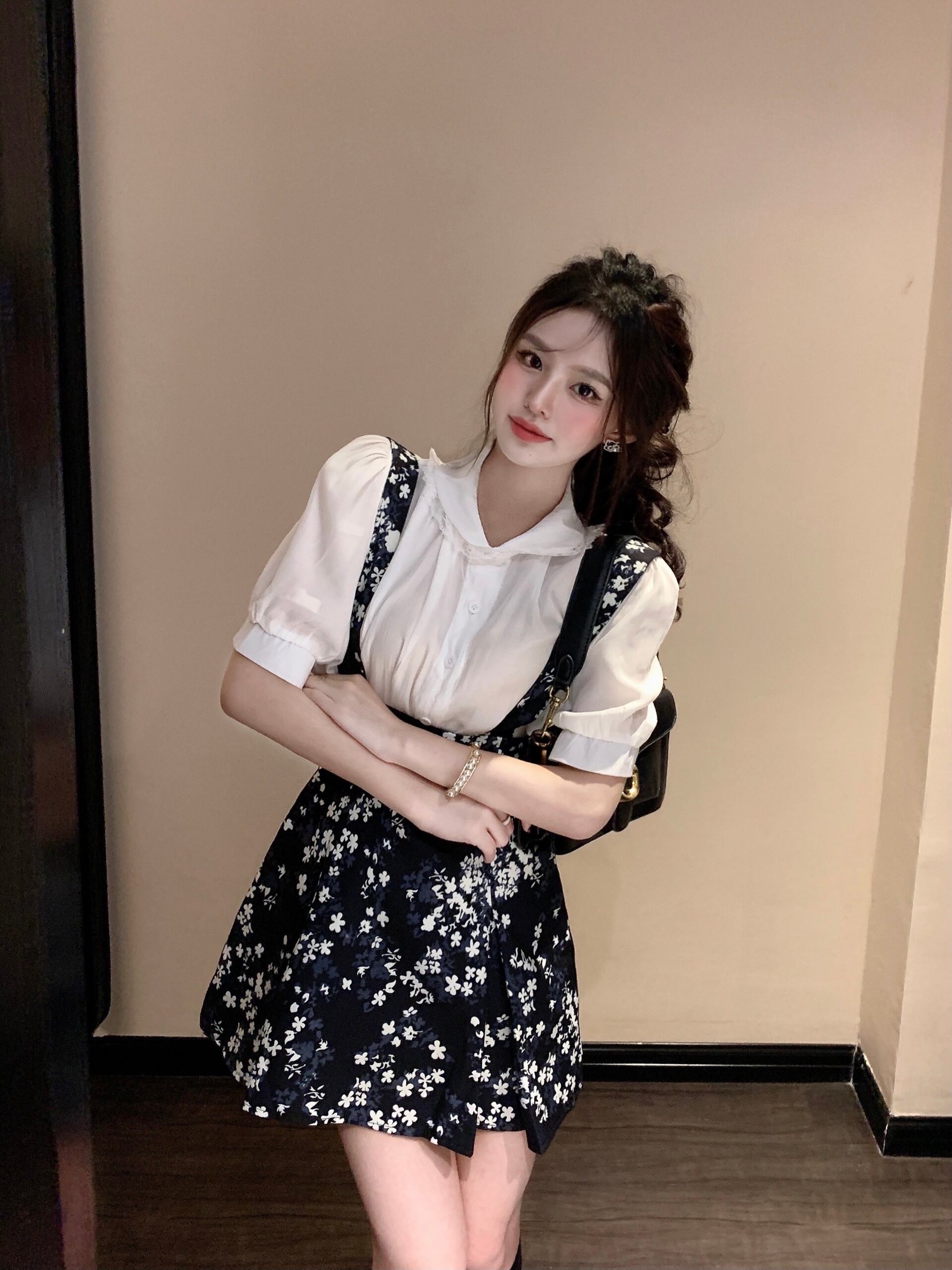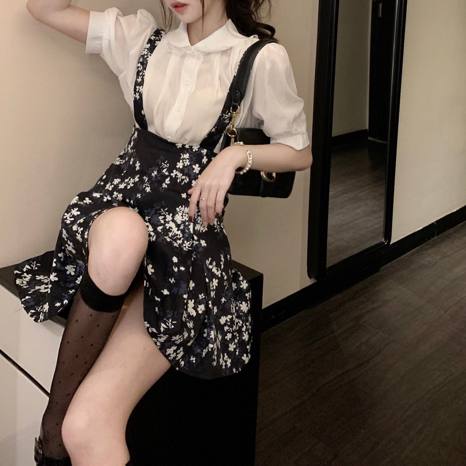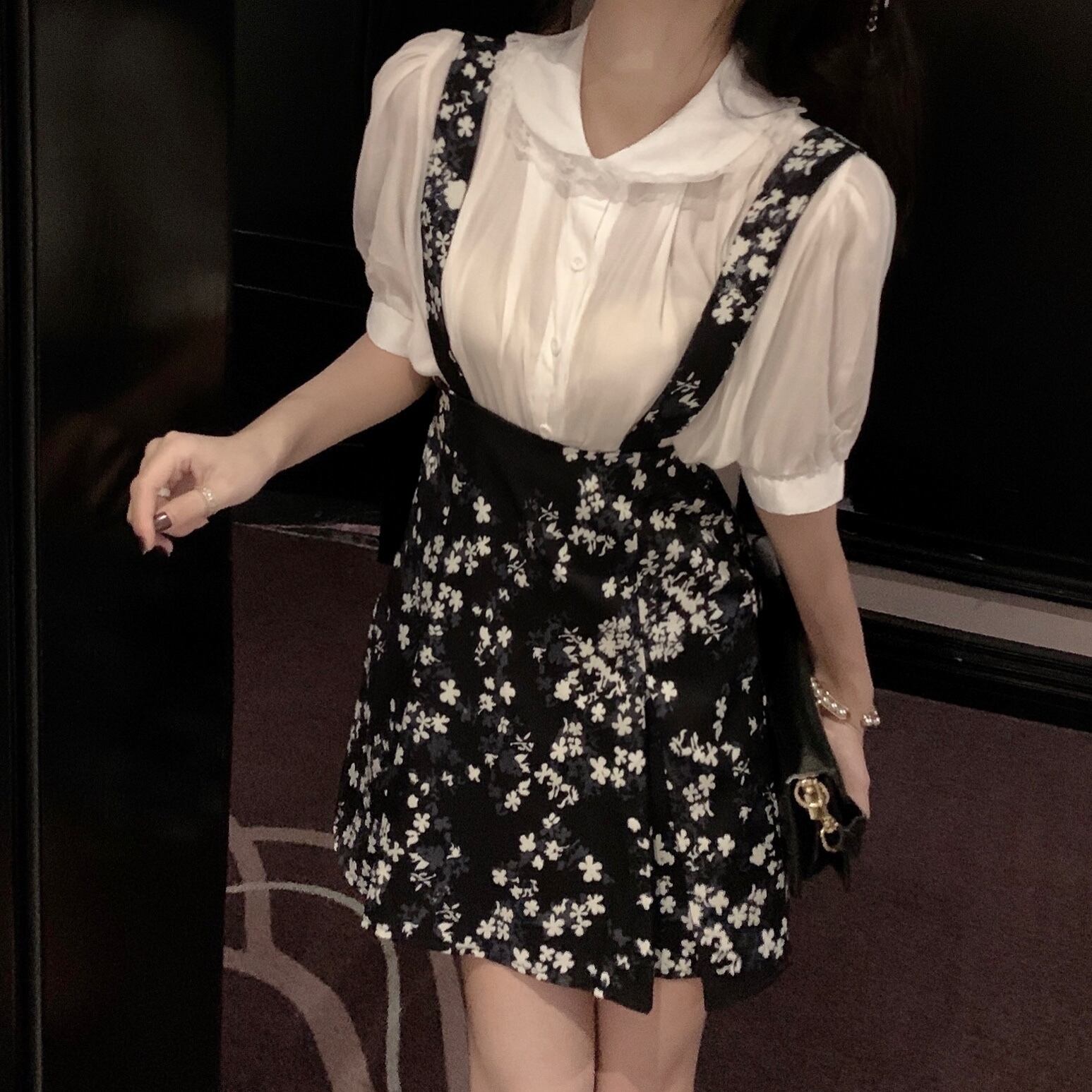 スカート サマースタイルカラーホワイトシャツ フローラル 夏物 花柄 セブンプリンセス83318432987