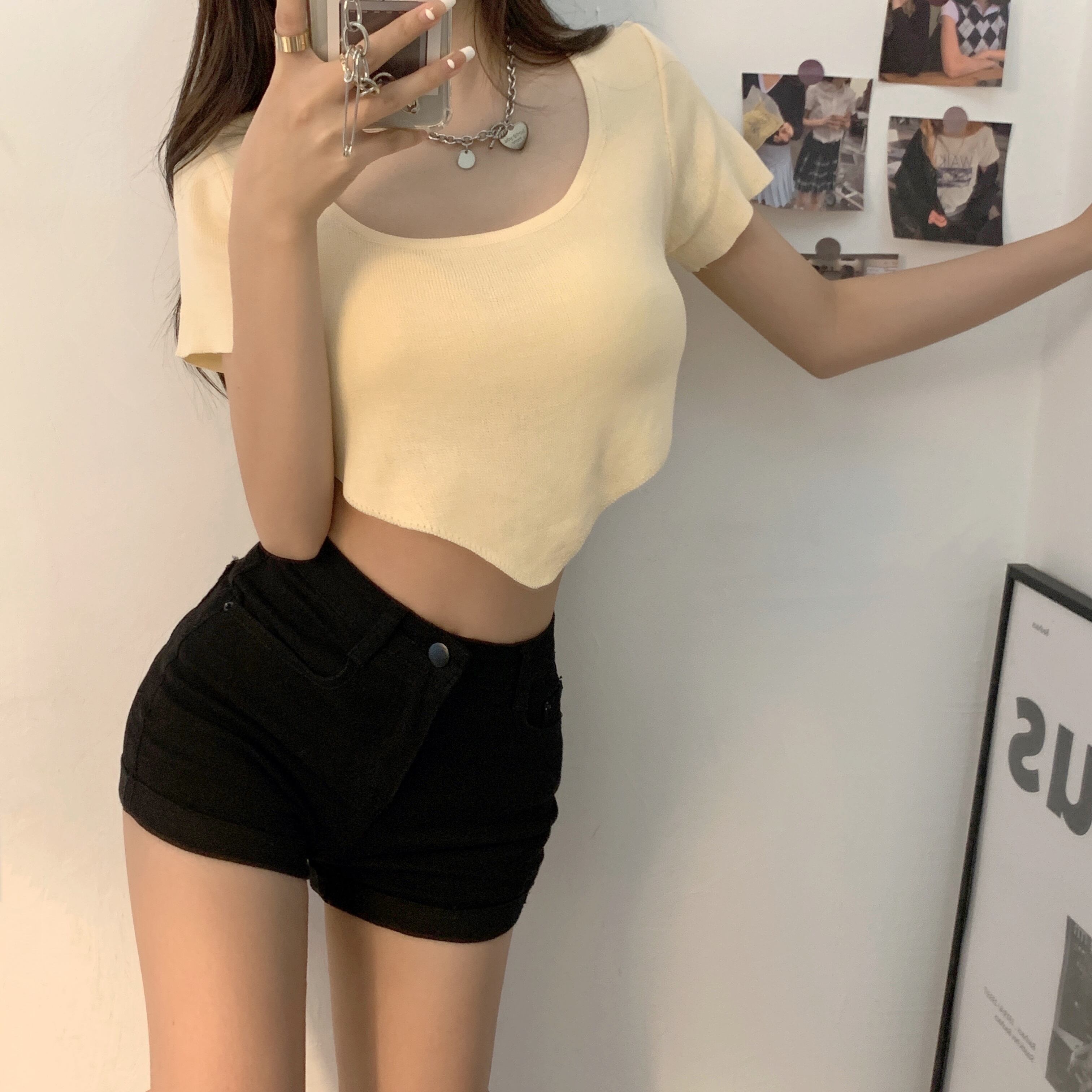 ショートTシャツ サマースリムソリッド カラートップス 夏物 ソリッドカラー セブンプリンセス78204982257