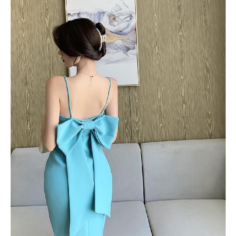 ドレス サマーリボンバックレスロングスカート ウェストブルー 夏物 セブンプリンセス51591763256