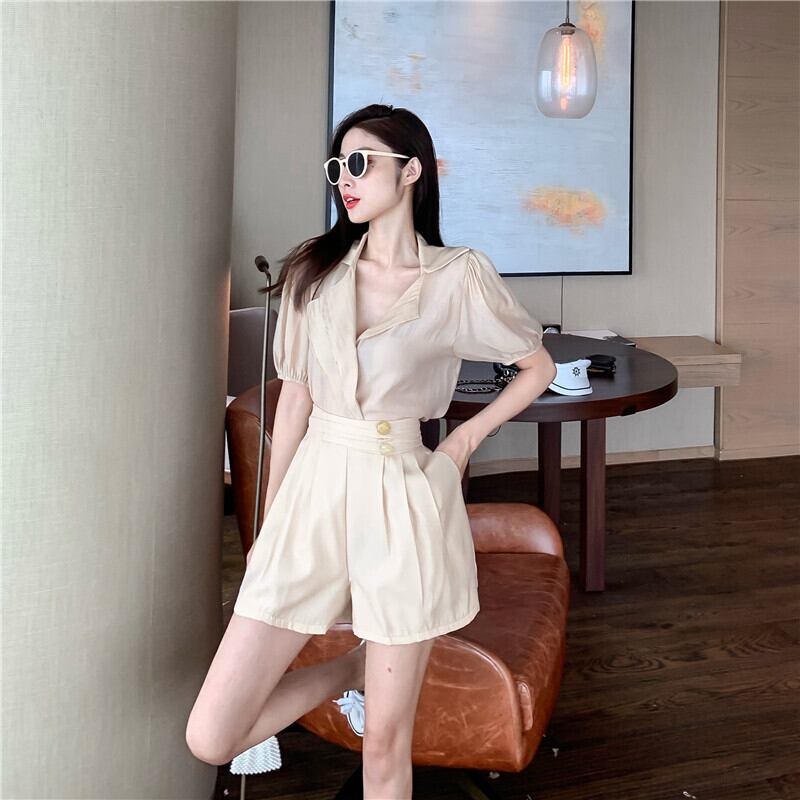 レディースサマーカラーシャツ ハイウェストウェストワイドレッグカジュアルショーツ 夏物 ブルマー ワイドパンツ セブンプリンセス29037514770
