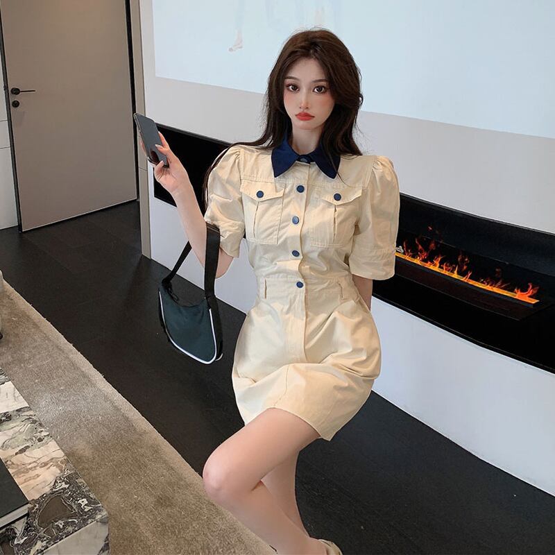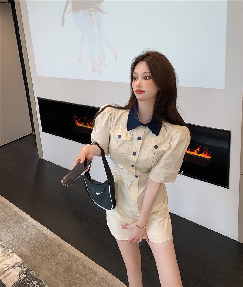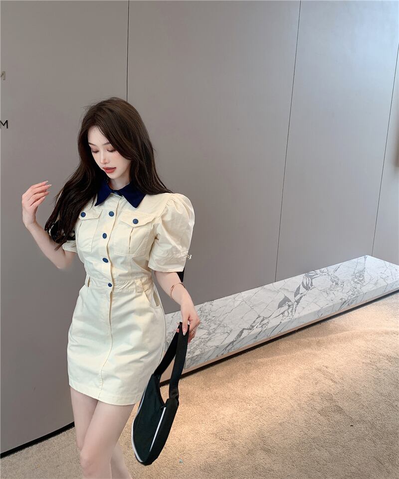ドレス スリーブスリムフィットスカート ショートサマースタイルカラーウェスト 夏物 セブンプリンセス35566692811