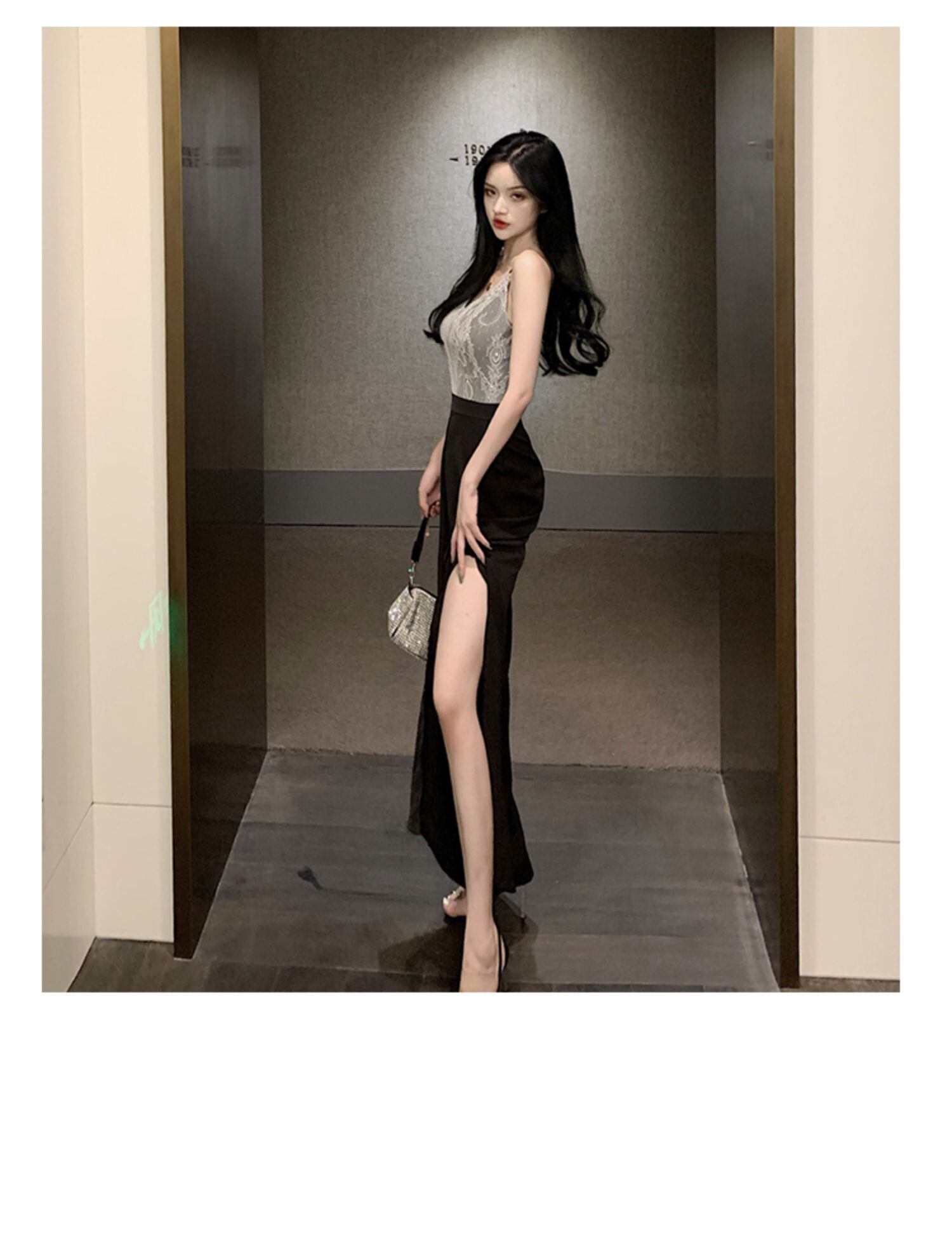 ジャンプスーツ オールインワン サマー薄手ワイドレッグブラックレース 夏物 ワイドパンツ セブンプリンセス32515635531