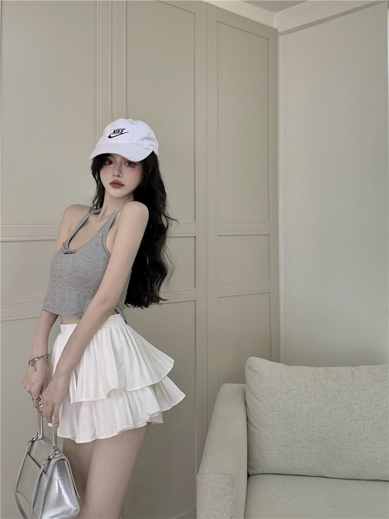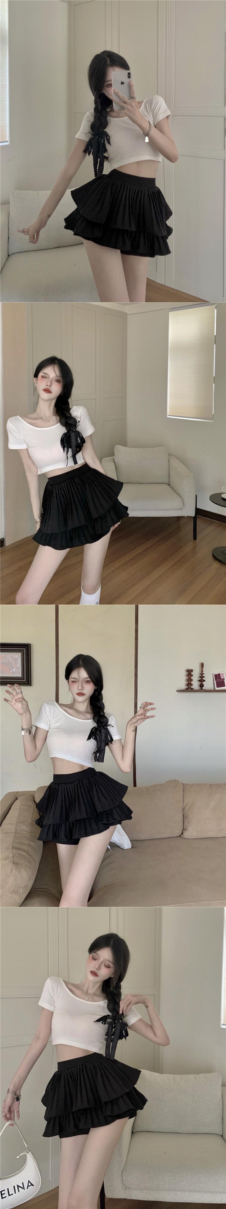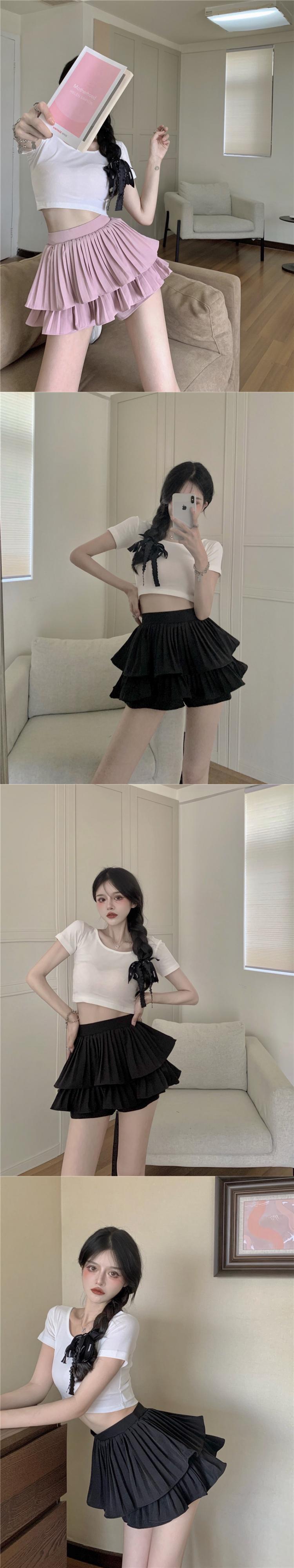 ホワイトスカート サマー薄手Aラインハイウェストウェストプリーツショートパンツ 夏物 セブンプリンセス95137019870
