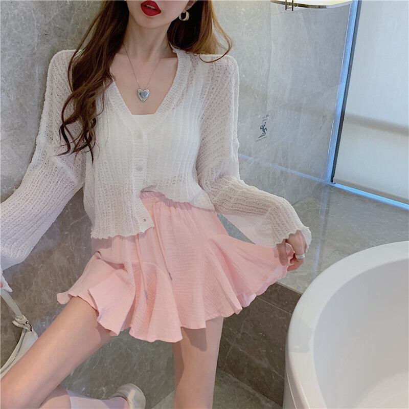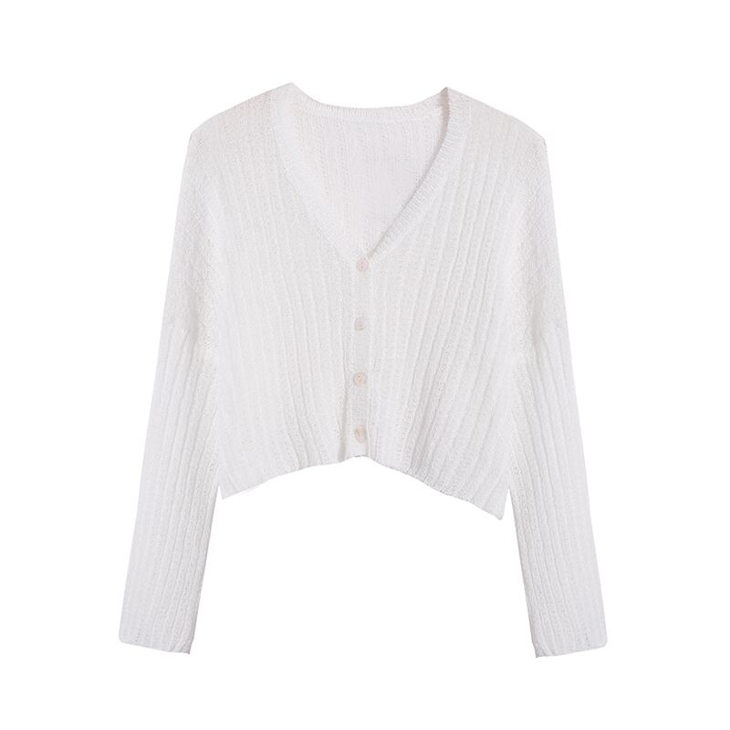 ニットセーター 薄手カーディガンレディースサマーショートブラウス スリムホワイトトップス ロング 夏物 シルク セブンプリンセス36169753322