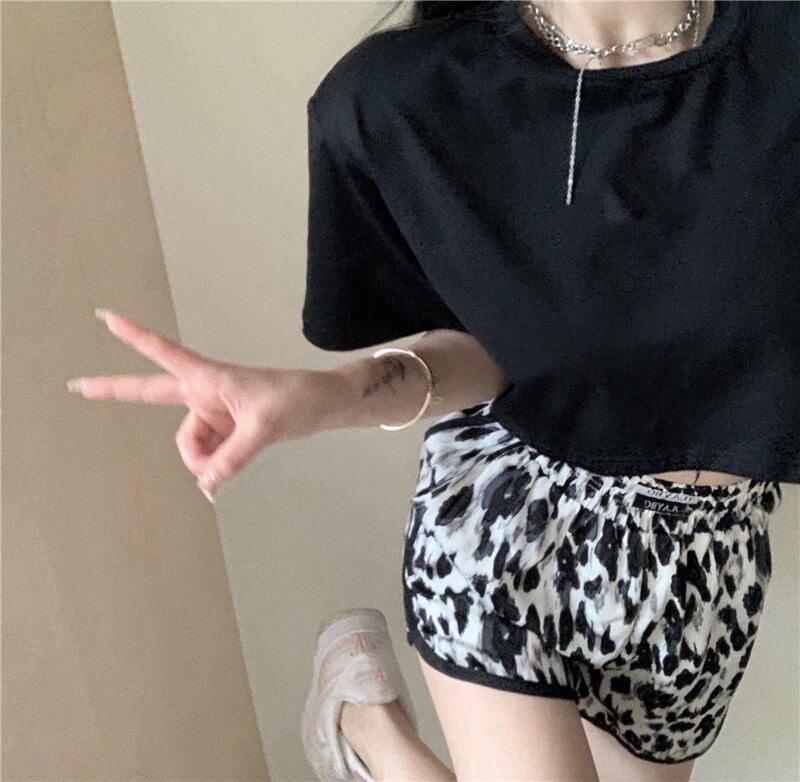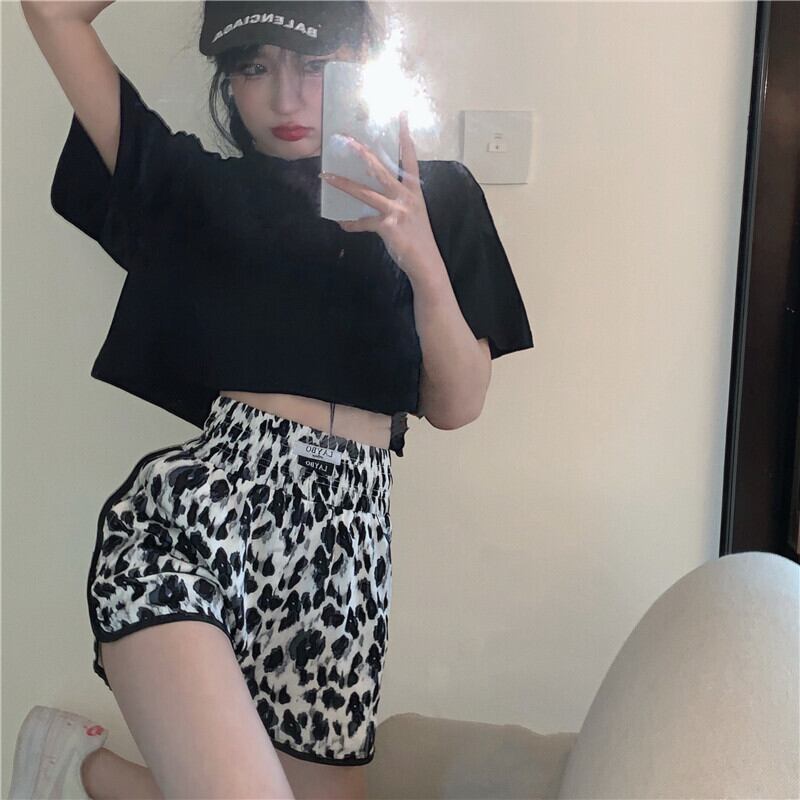 レオパードプリント柄パンツ サマー薄手ハイウェストウェストワイドレッグショーツ ルーズカジュアル 夏物 ブルマー ワイドパンツ シルク セブンプリンセス27676187704