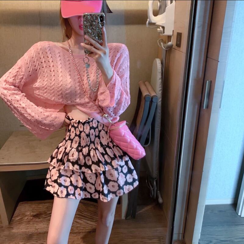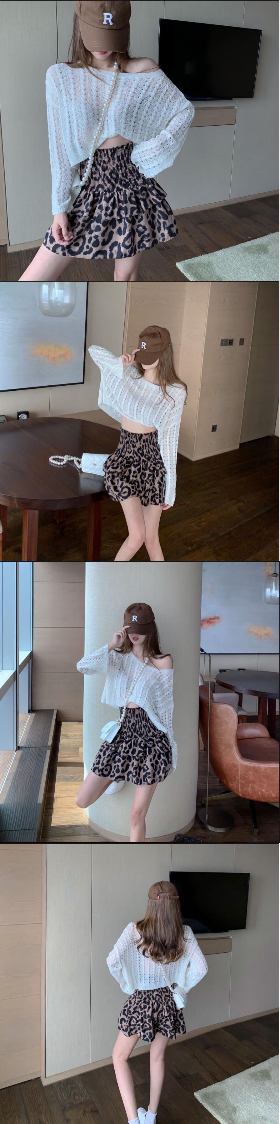 色:白いセーター,ヒョウスカート,ピンクフラワースカート,ピンクのセーター,ブルーフラワースカート,青いセーター