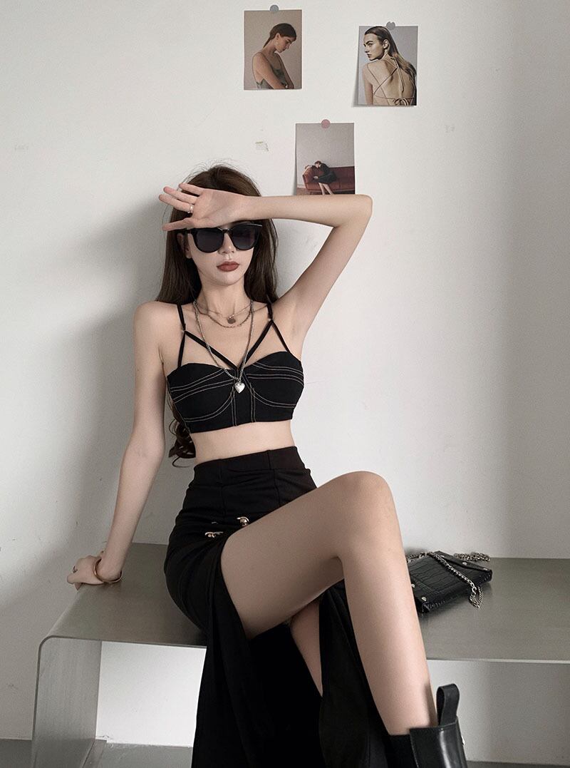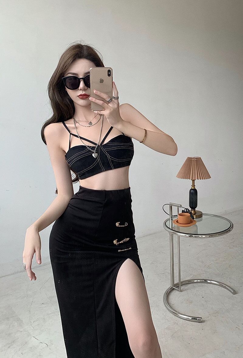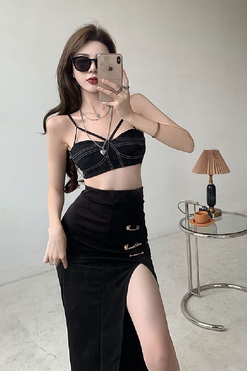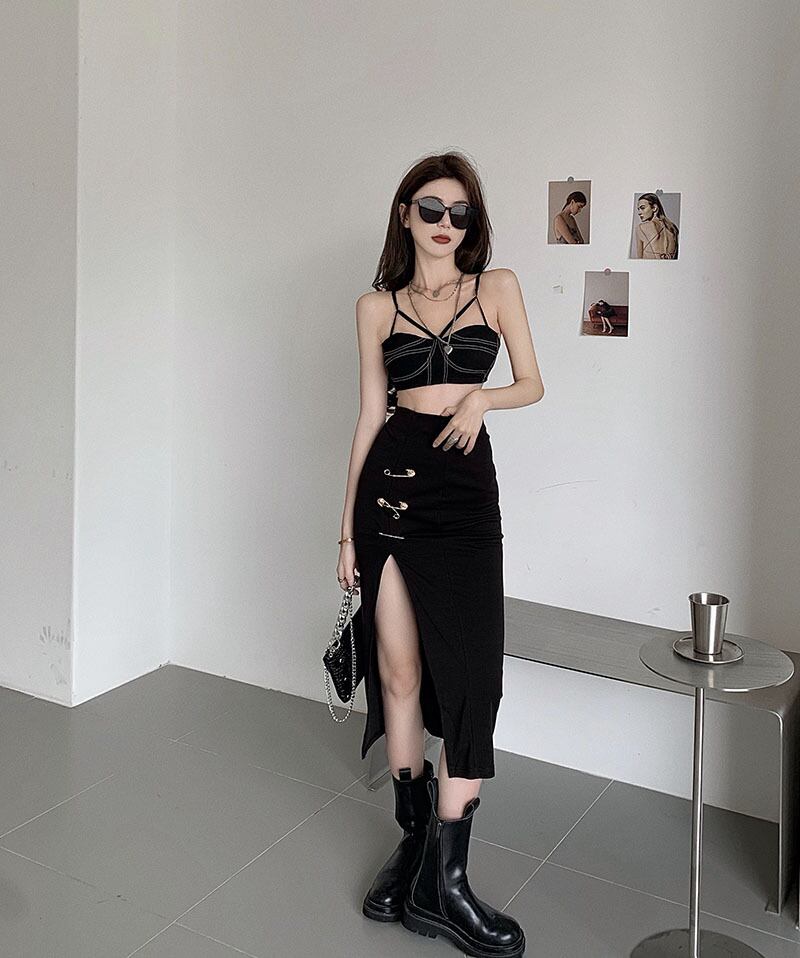 スカート サマー薄手ウェストハイウェストブラックAライン 夏物 セブンプリンセス62073275016