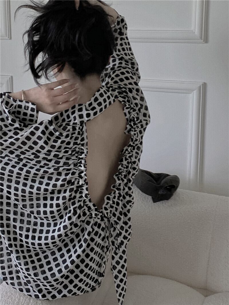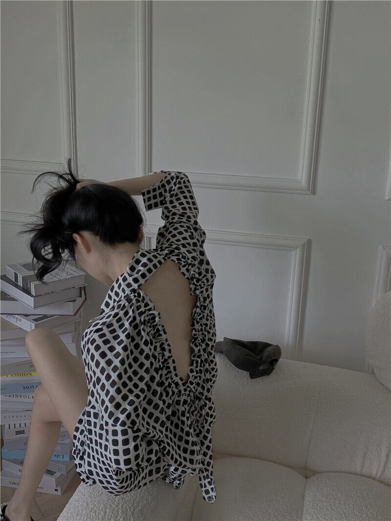 格子柄サマーバックシャツ ストレッチウェストワイドレッグショーツ ストリート エラスティック 伸縮 夏物 ブルマー ワイドパンツ セブンプリンセス78422924306