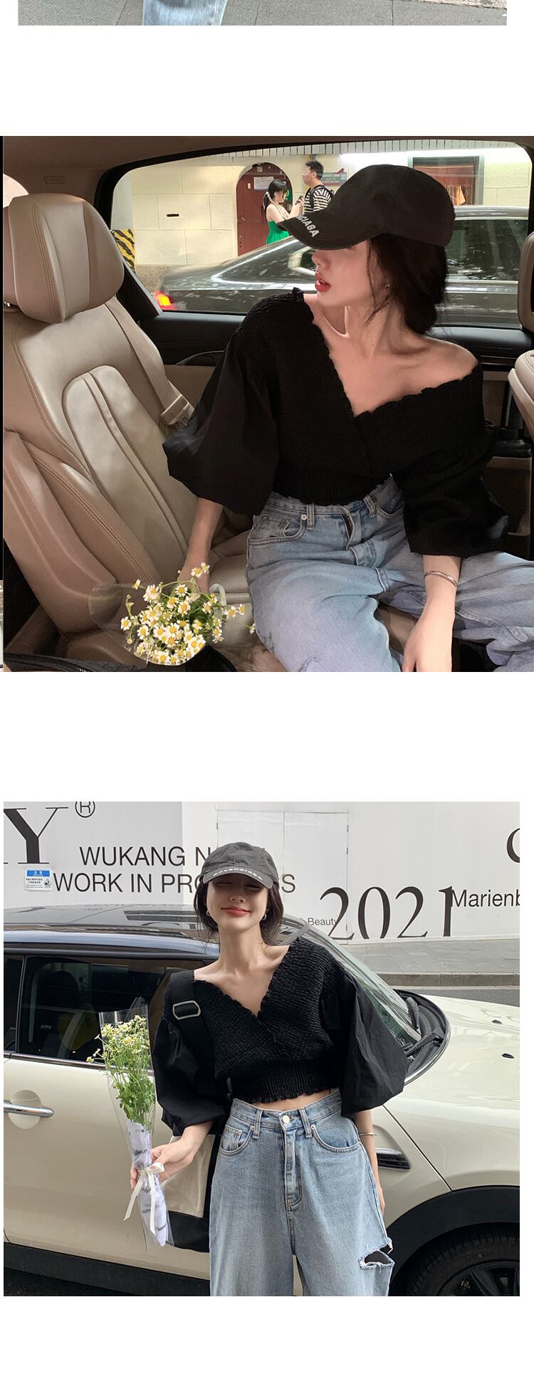 シャツ スリーブサマースタイルVネックプリーツ 夏物 セブンプリンセス9969400088