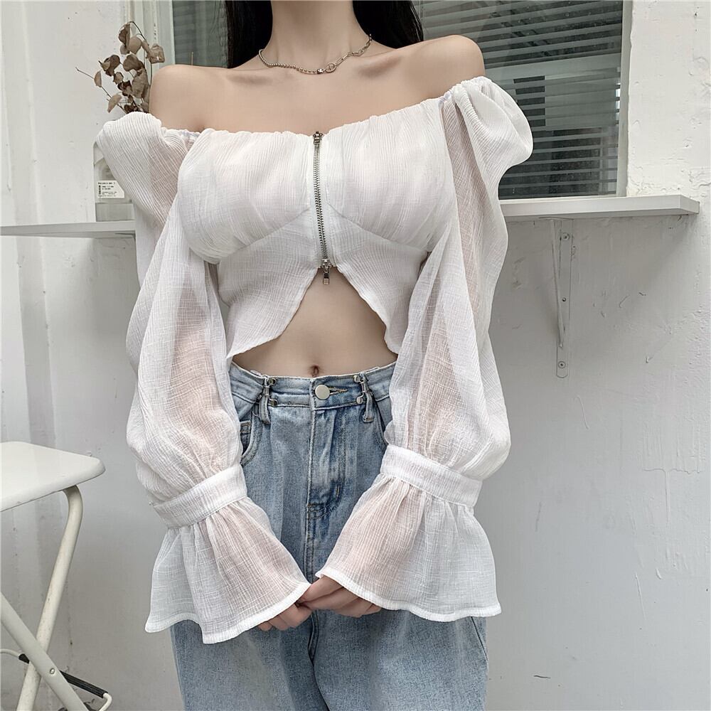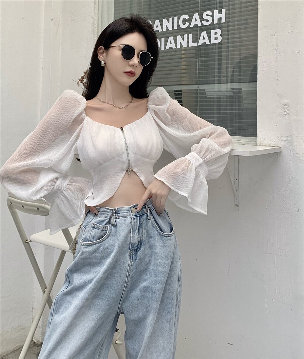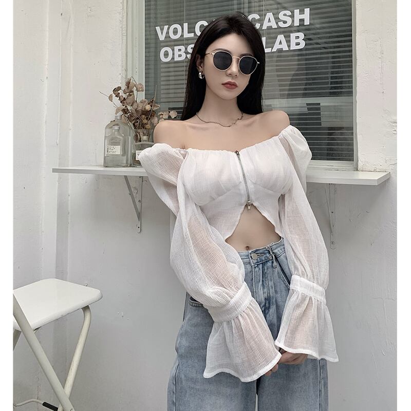 スリーブシフォンシャツ サマー薄手ウェストカーディガンショートホワイトトップス ロング 夏物 セブンプリンセス78201288084