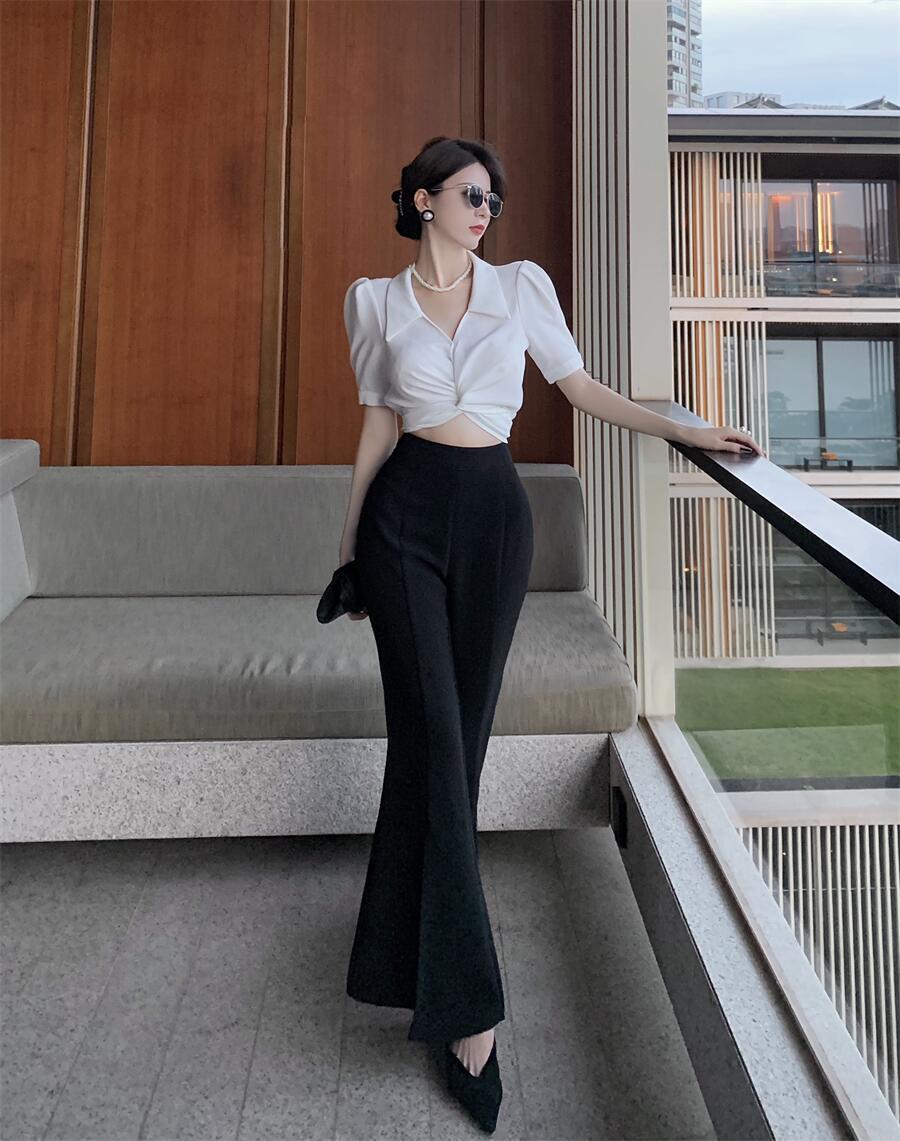 スタンダードブラックパンツ サマー薄手ルーズカジュアルハイウェスト レッド レトロ 夏物 セブンプリンセス13739513021
