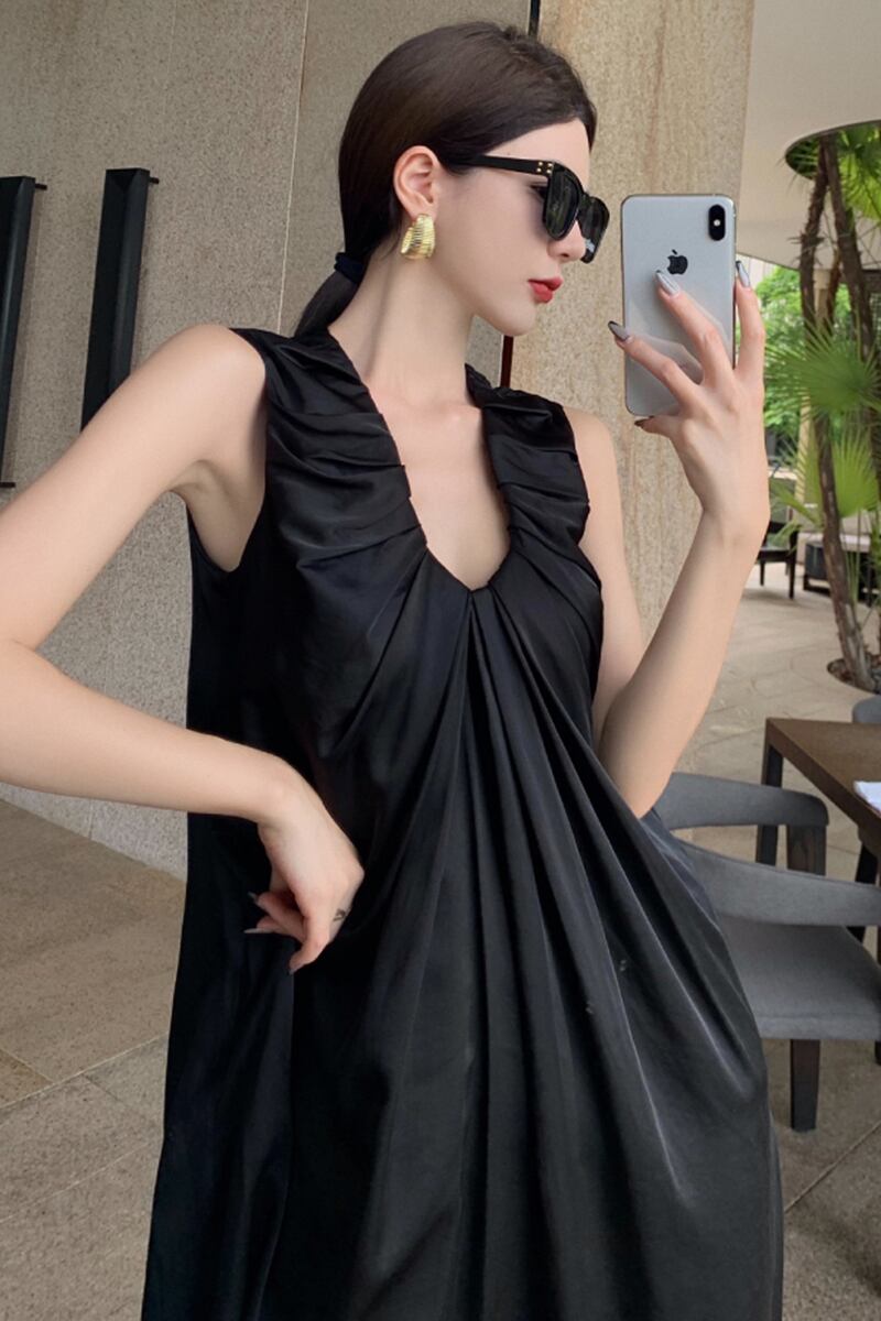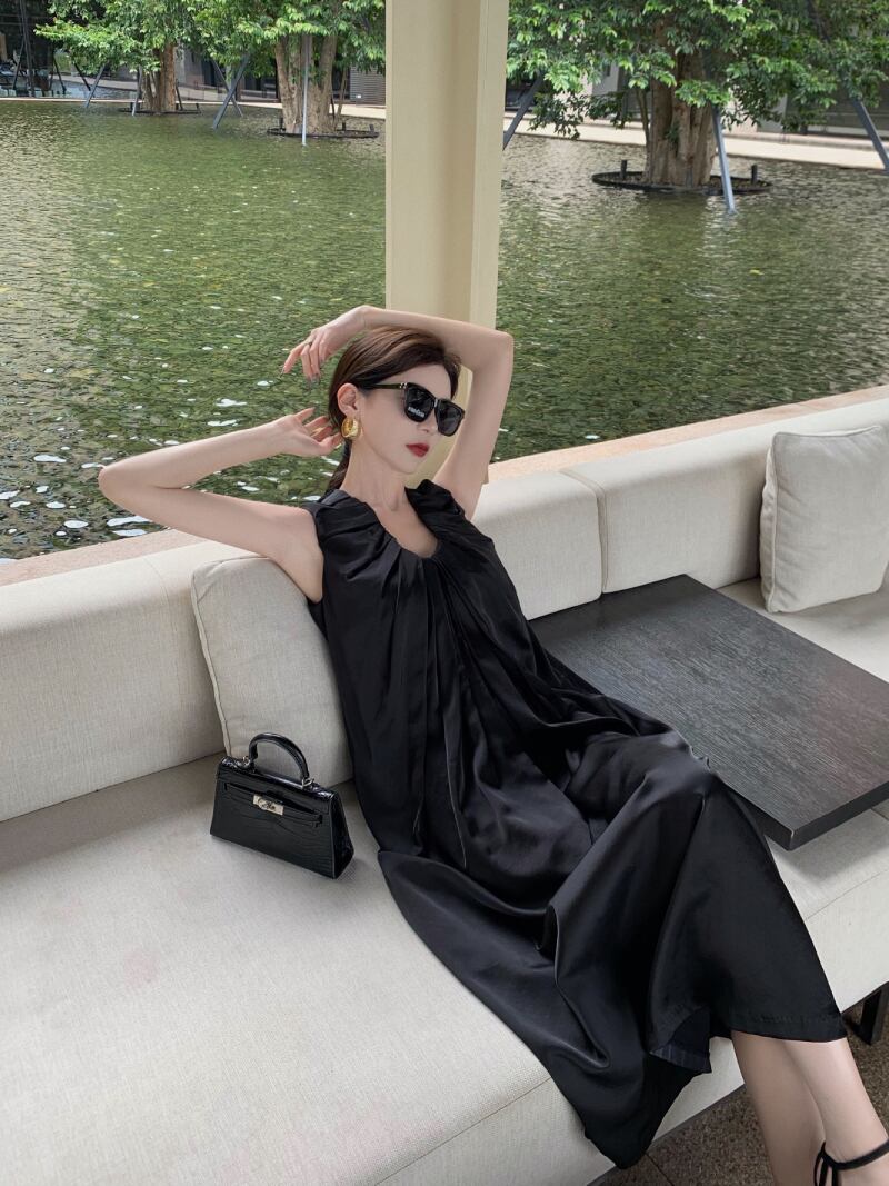 スタンダードスタイルドレス サマー薄手ロングスカート ウェストAライン レトロ 夏物 セブンプリンセス99209177776