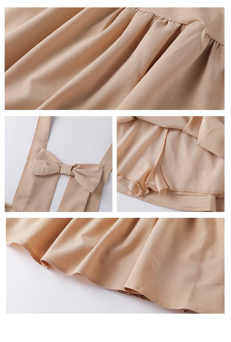 色:白のシャツ,ブラックストラップドレス,カーキストラップドレス