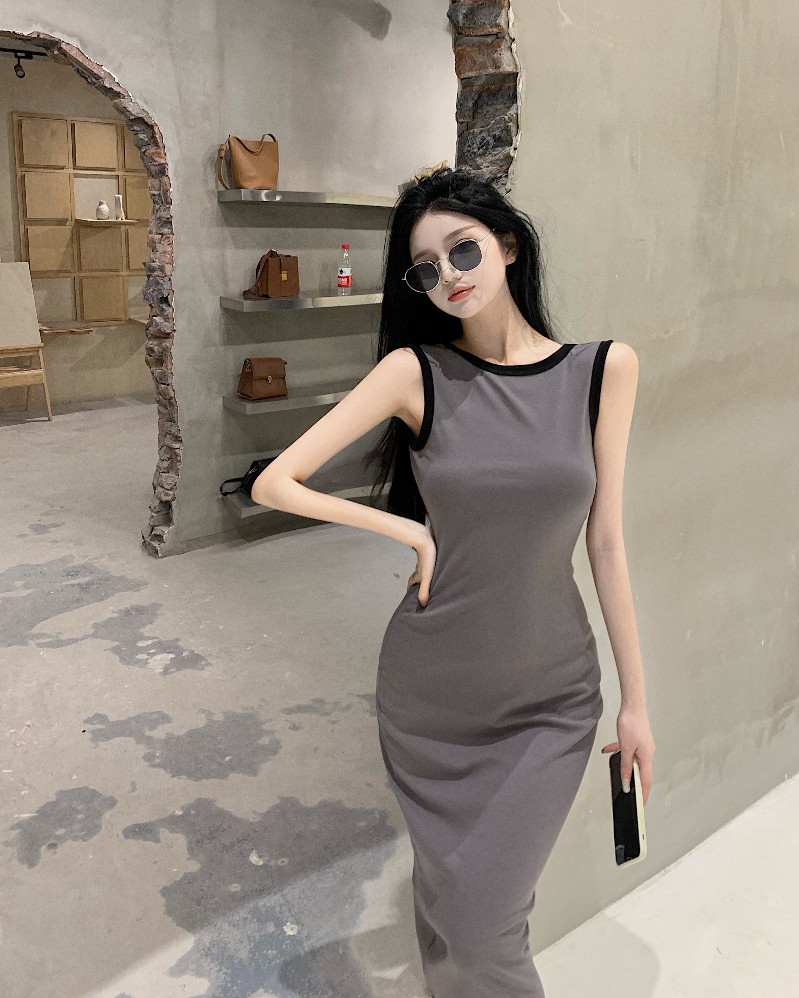 ノースリーブドレス サマースタイルカラースカート ウェストロング 夏物 スクウェア セブンプリンセス59795929101