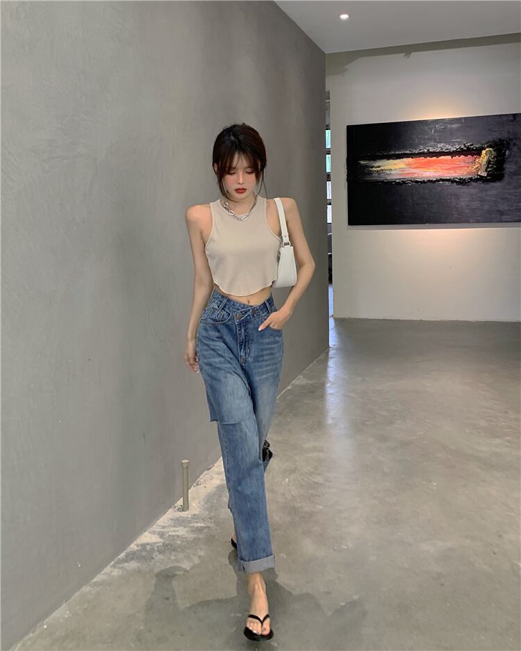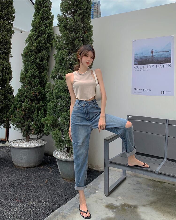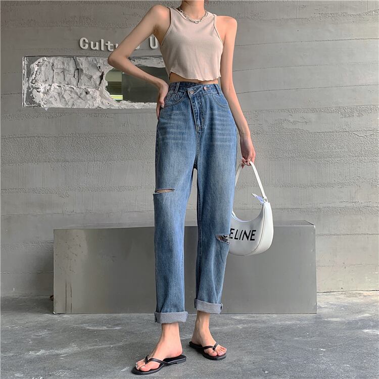 ジーンズ サマー薄手スタンダードハイウェストウェストルーズワイドレッグパンツ カジュアル レトロ 夏物 ワイドパンツ セブンプリンセス61176237276