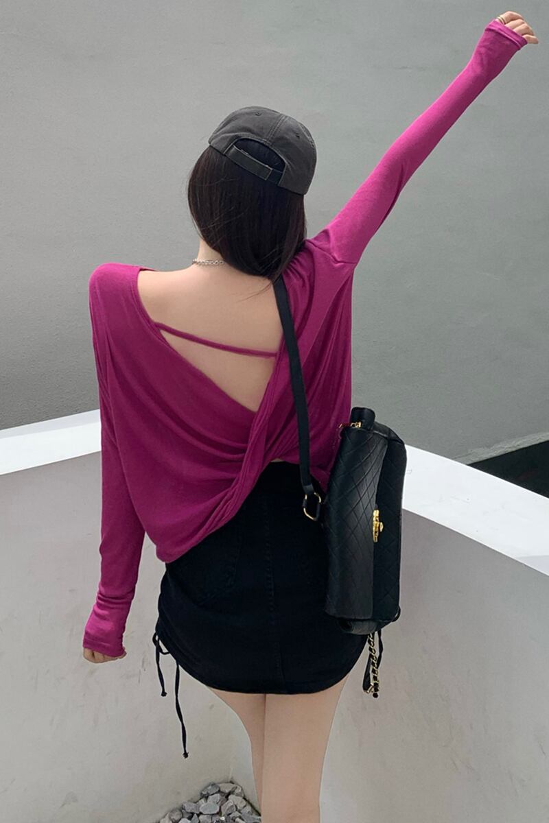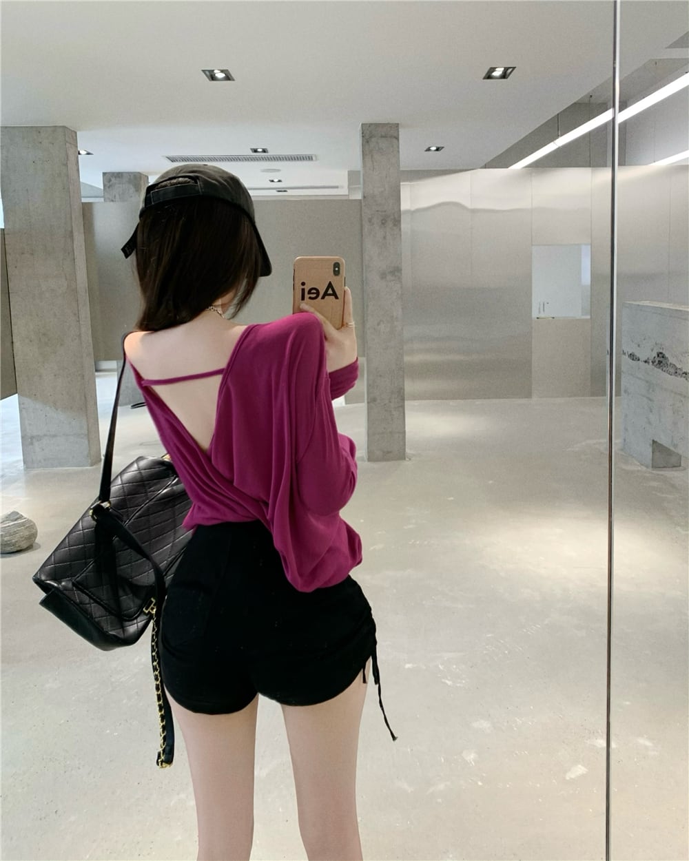 薄手Tシャツ サマーバックルーズブラウス 長袖スリーブカジュアルソリッド カラーレッドトップス ロング 夏物 ソリッドカラー セブンプリンセス88143176607