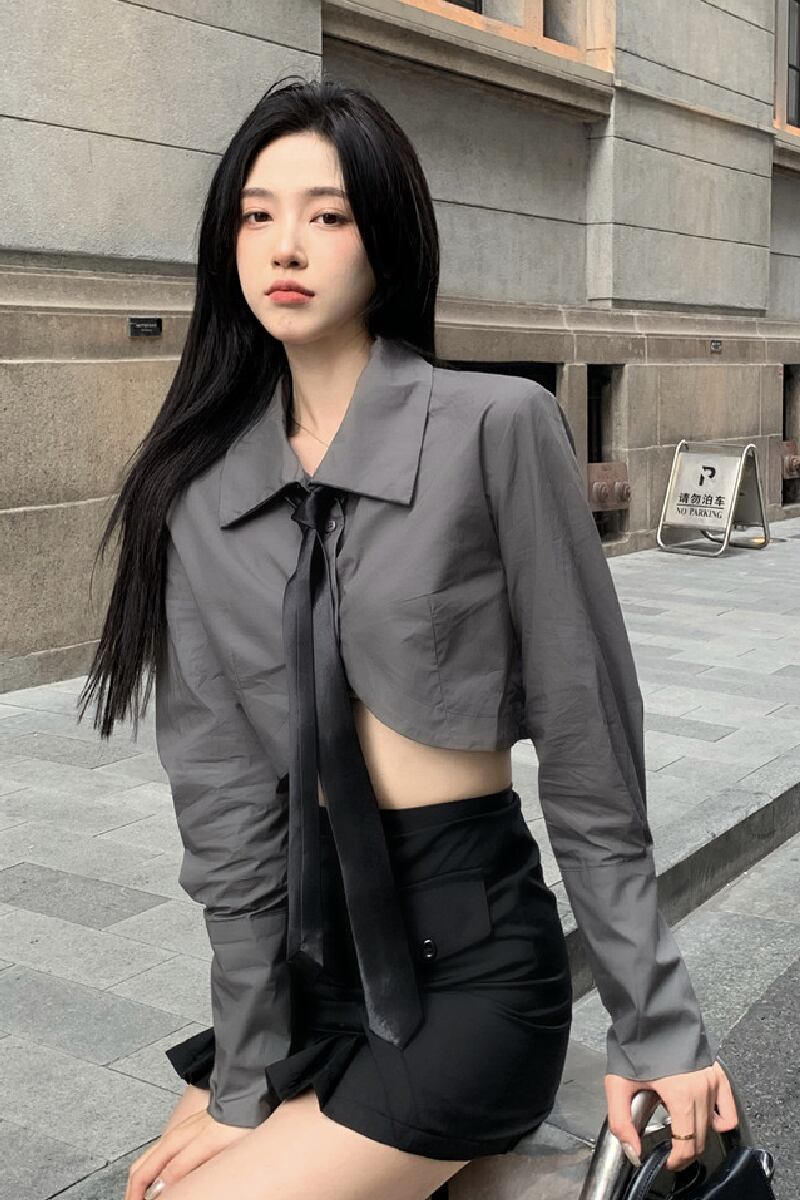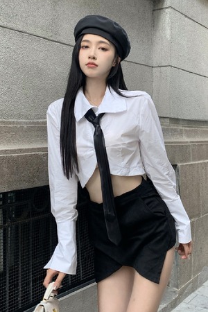 シャツ レディースサマー薄手ハイウェストクロップドショートトップス ロング 夏物 セブンプリンセス44070366792