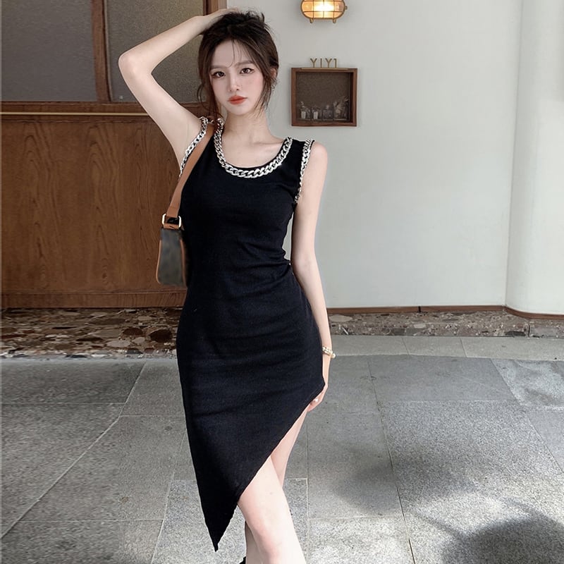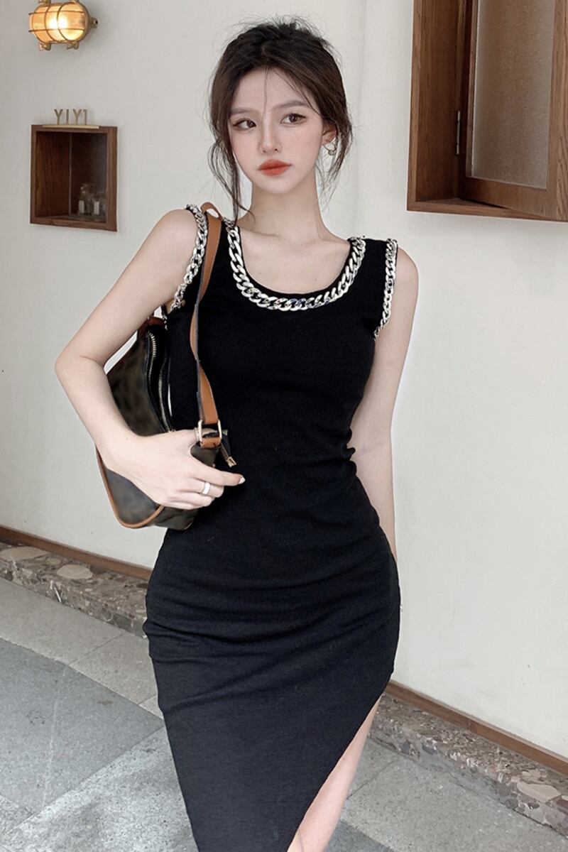 ドレス サマーチェーン ウェストショートスカート ブラック 夏物 セブンプリンセス84305049719